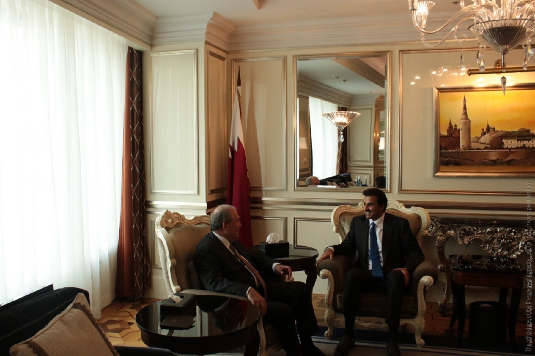 Մոսկվայում գտնվող Հանրապետության նախագահ Արմեն Սարգսյանը հանդիպում է ունեցել Կատարի էմիր Թամիմ բին Համադ Ալ Թանիի հետ: