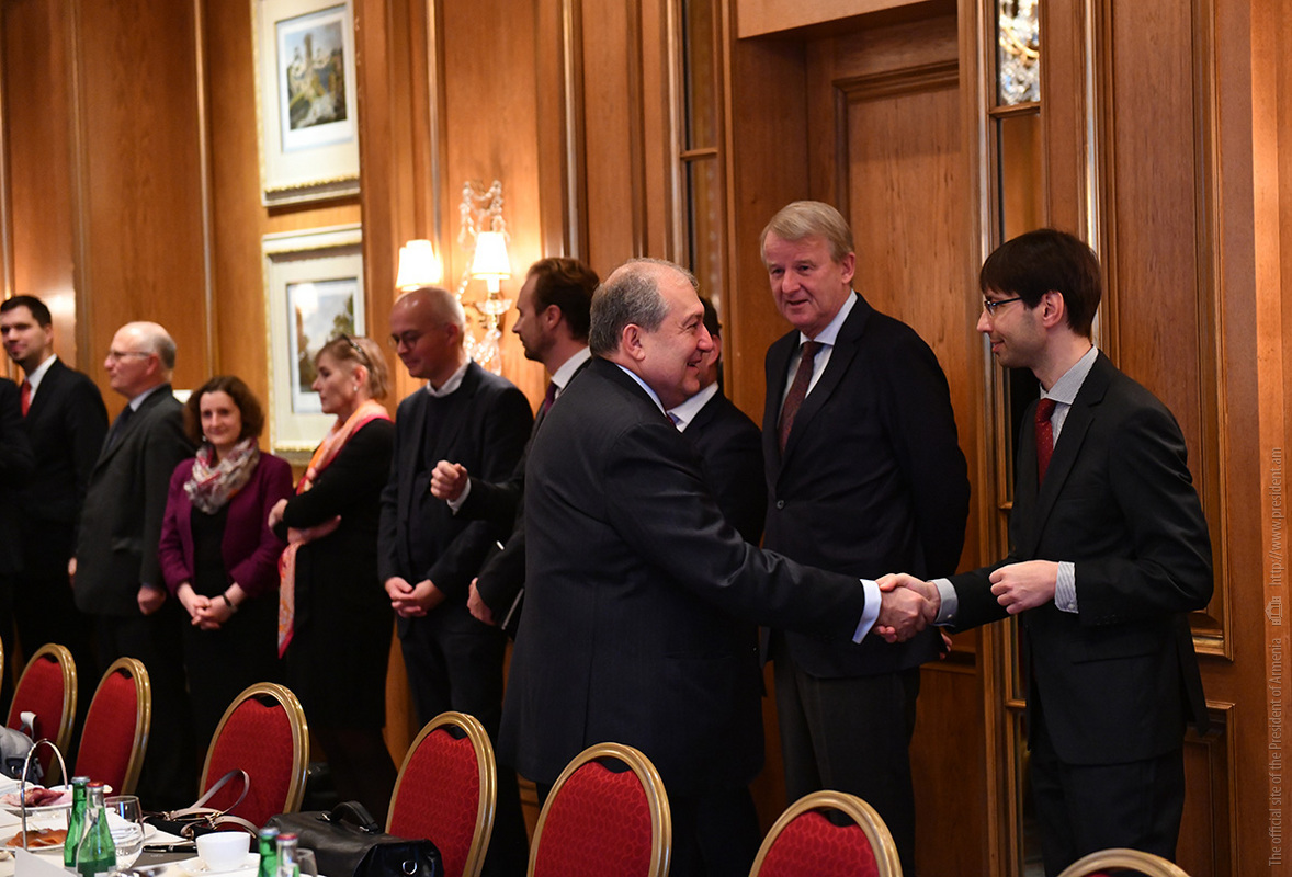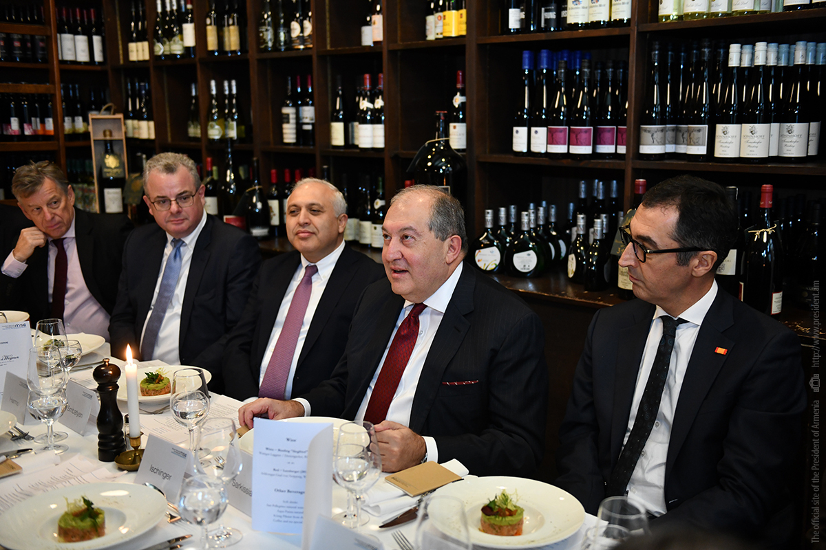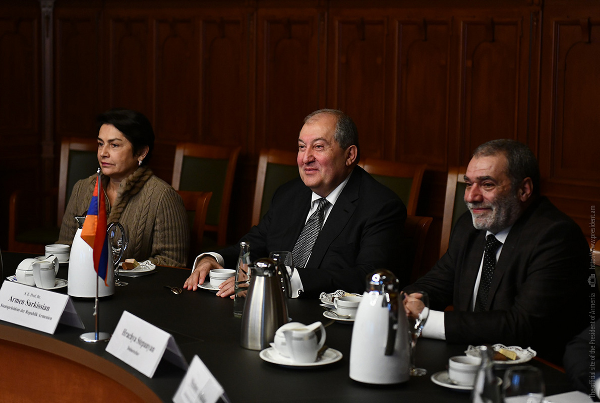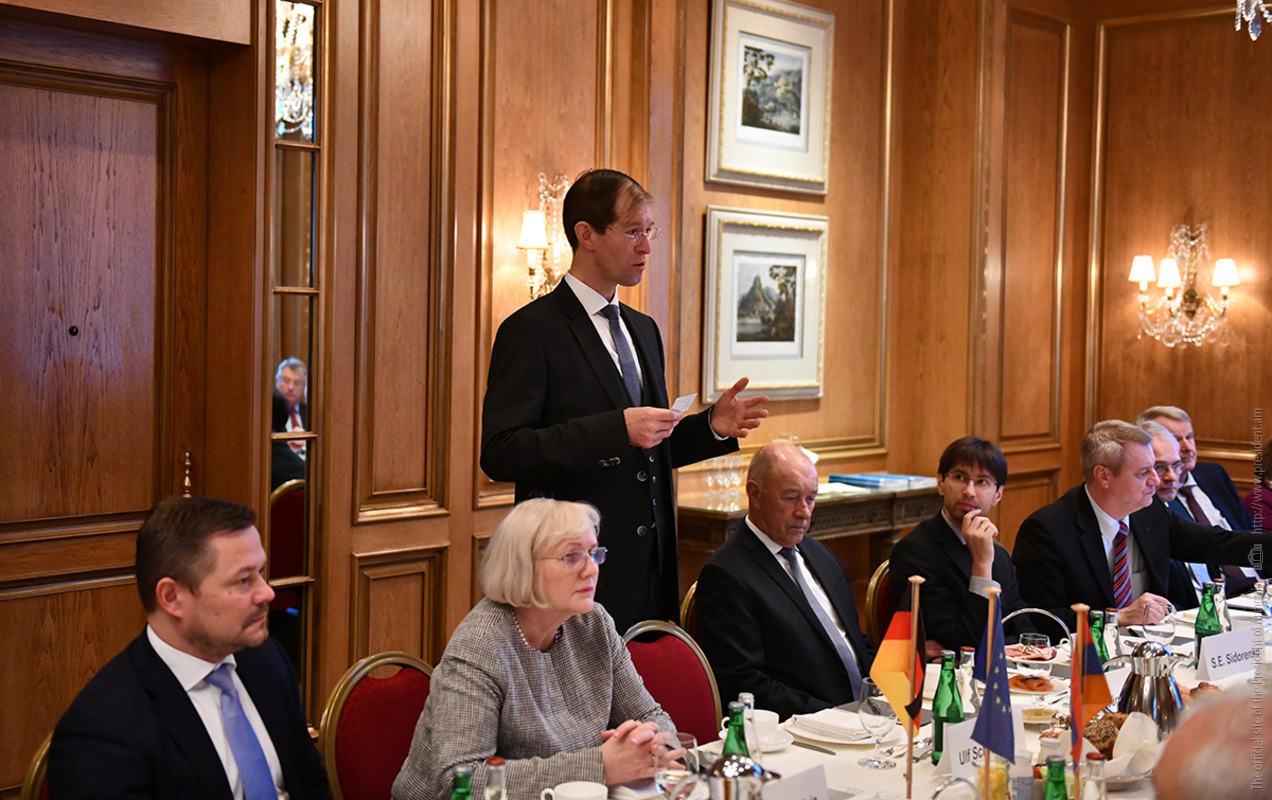Պաշտոնական այցով Գերմանիայի Դաշնային Հանրապետությունում գտնվող նախագահ Արմեն Սարգսյանը նոյեմբերի 28-ին աշխատանքային նախաճաշ է ունեցել գերմանական մի շարք առաջատար ընկերությունների ղեկավարների հետ, որոնք գործունեություն են ծավալում Հայաստանում կամ հետաքրքրված են Հայաստանի հետ համագործակցությամբ: Հանդիպումը կազմակերպվել է Գերմանիայում ՀՀ դեսպանության, OWC հրատարակչության, Գերմանիայի տնտեսության Արևելյան հանձնաժողովի ու «Արևելյան Եվրոպա. մանր ու միջին տնտեսվարողների միության» կողմից։