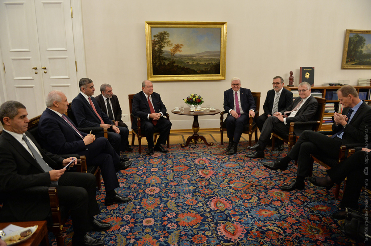 Այնուհետև տեղի է ունեցել Ֆրանկ-Վալտեր Շտայնմայերի և Արմեն Սարգսյանի առանձնազրույցը, որին հաջորդել է ընդլայնված կազմով հանդիպումը՝ պատվիրակությունների մասնակցությամբ: