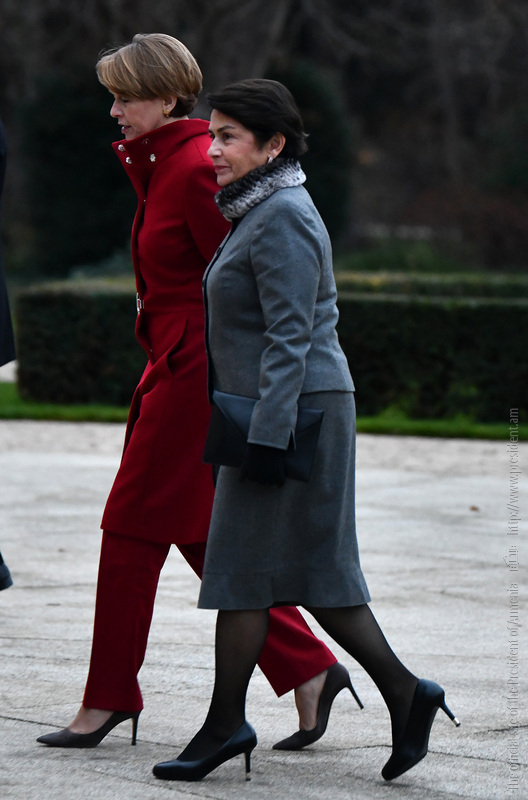 Նախագահ Ֆրանկ-Վալտեր Շտայնմայերը և տիկին Էլկե Բյուդենբենդերը նախագահ Արմեն Սարգսյանին ու տիկին Նունե Սարգսյանին դիմավորել են ամրոցի մուտքի մոտ և ուղեկցել նախասրահ՝ գրառում կատարելու պատվո հյուրերի գրքում։