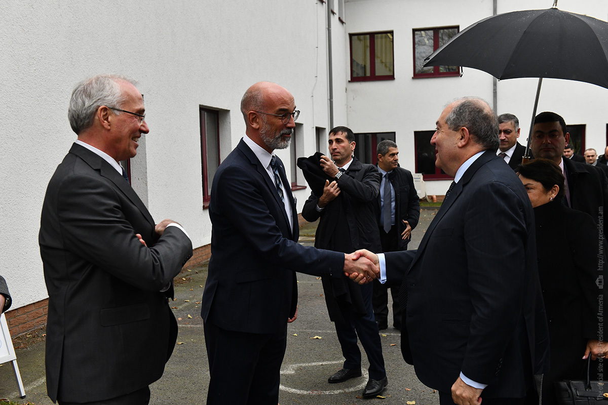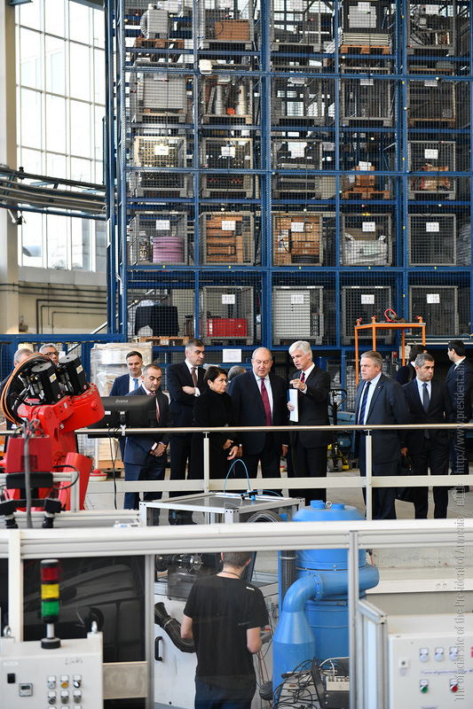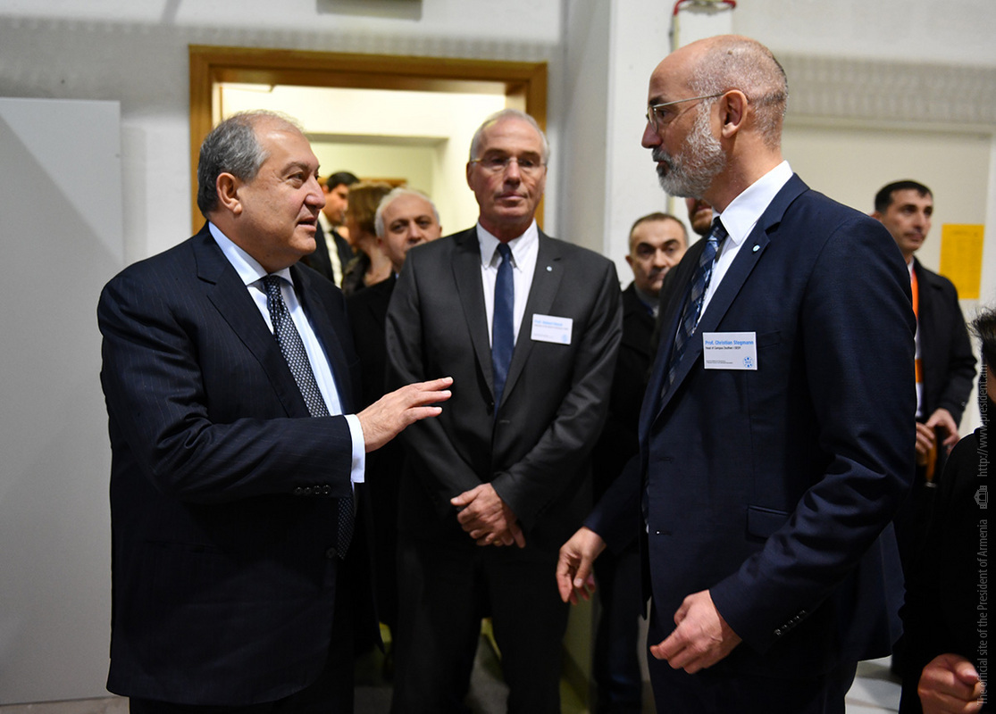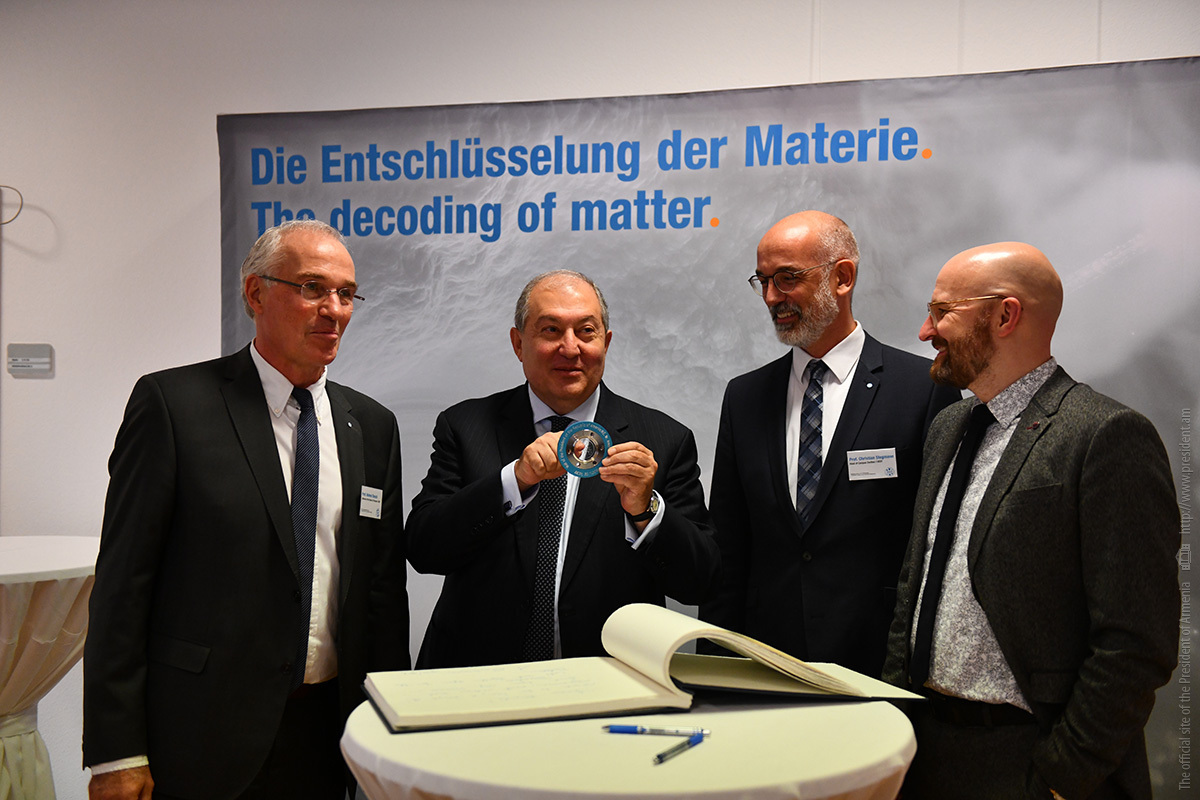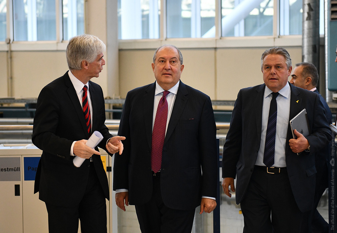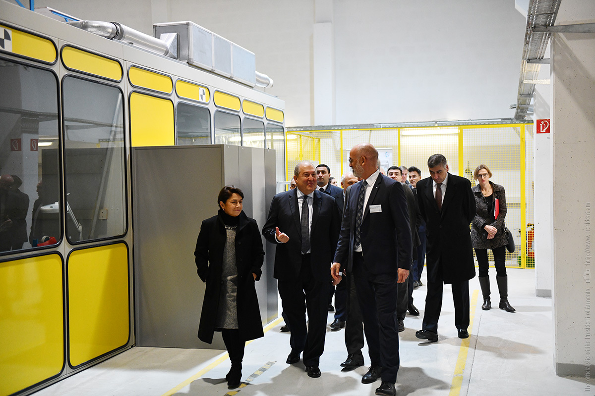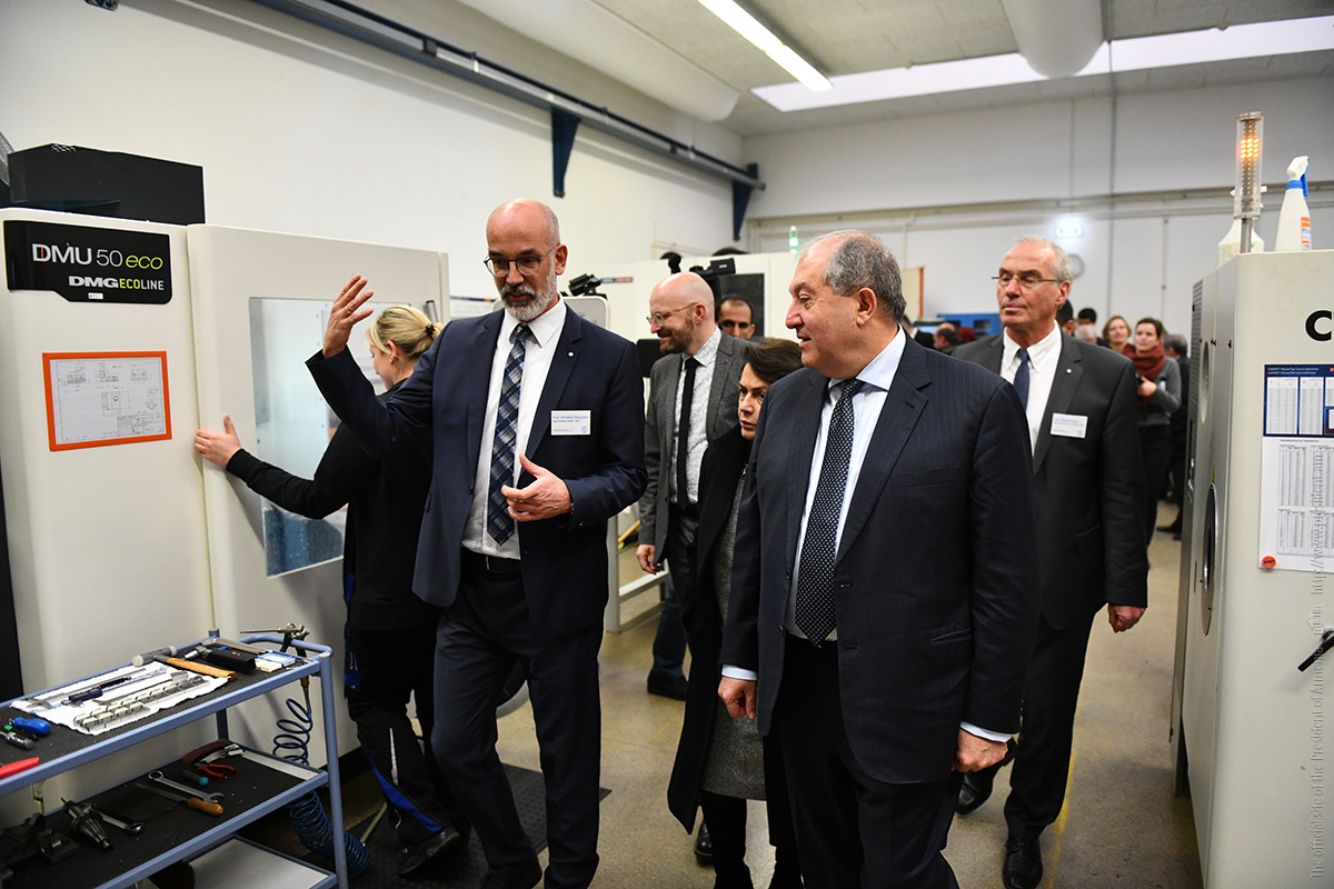 Ինստիտուտի տնօրեն Էքարթ Ուհլմանի ուղեկցությամբ նախագահ Արմեն Սարգսյանն ու տիկին Նունե Սարգսյանը շրջել են հաստատության «Արտադրական տեխնոլոգիաներ» փորձարարական սրահում, ծանոթացել ինստիտուտի գործունեությանը։