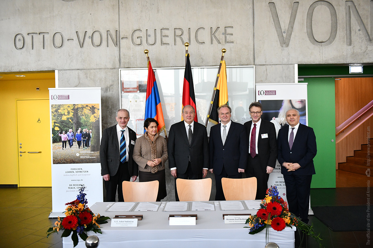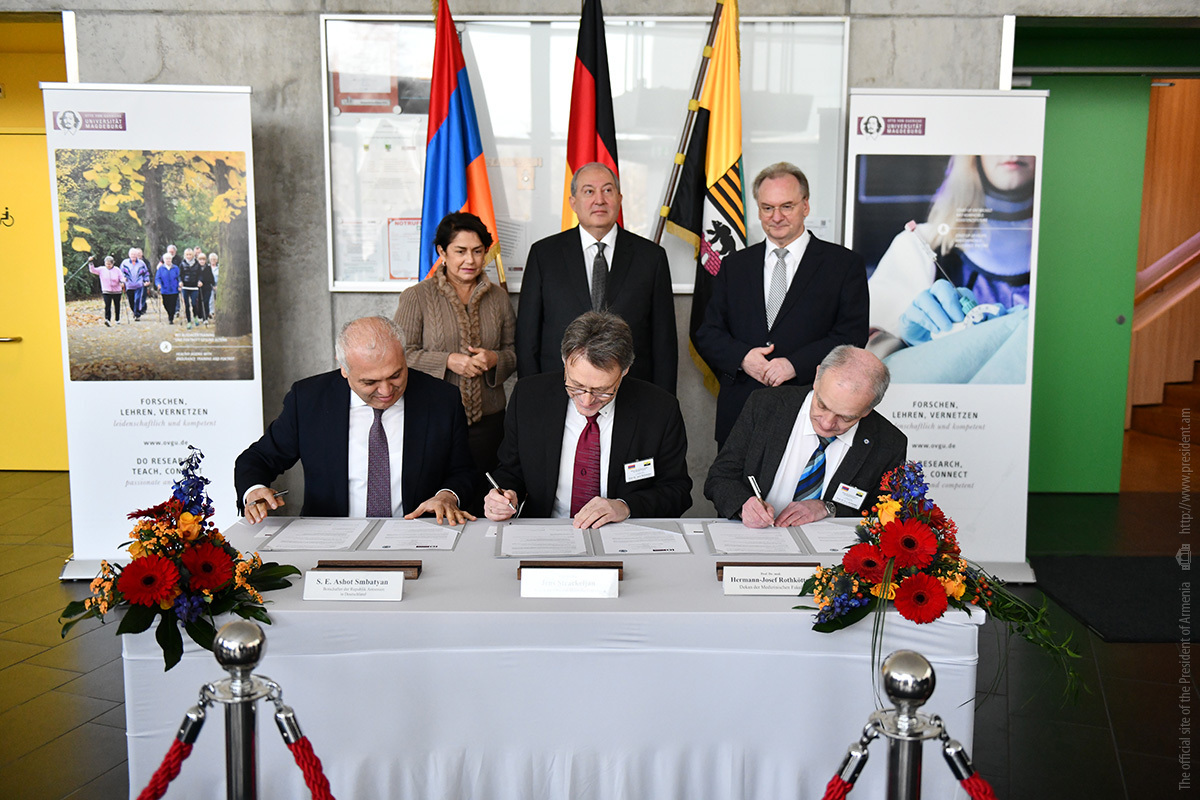 Այցի ընթացքում նախագահ Արմեն Սարգսյանի և Ռայներ Հազելոֆի ներկայությամբ Երևանի պետական բժշկական համալսարանի և Օտտո-ֆոն Գերիկեի համալսարանի բժշկական ֆակուլտետի միջև համագործակցության համաձայնագիր է ստորագրվել։