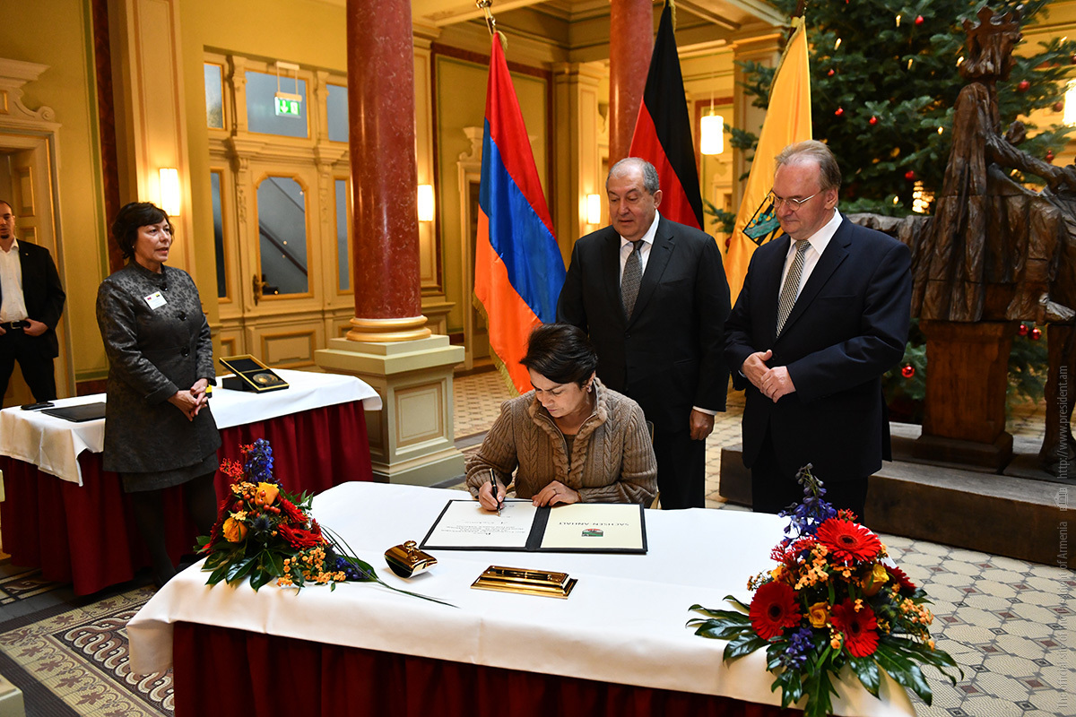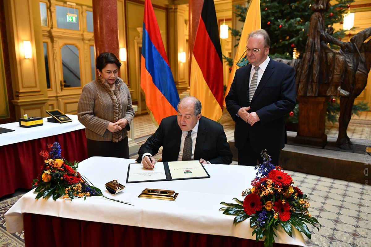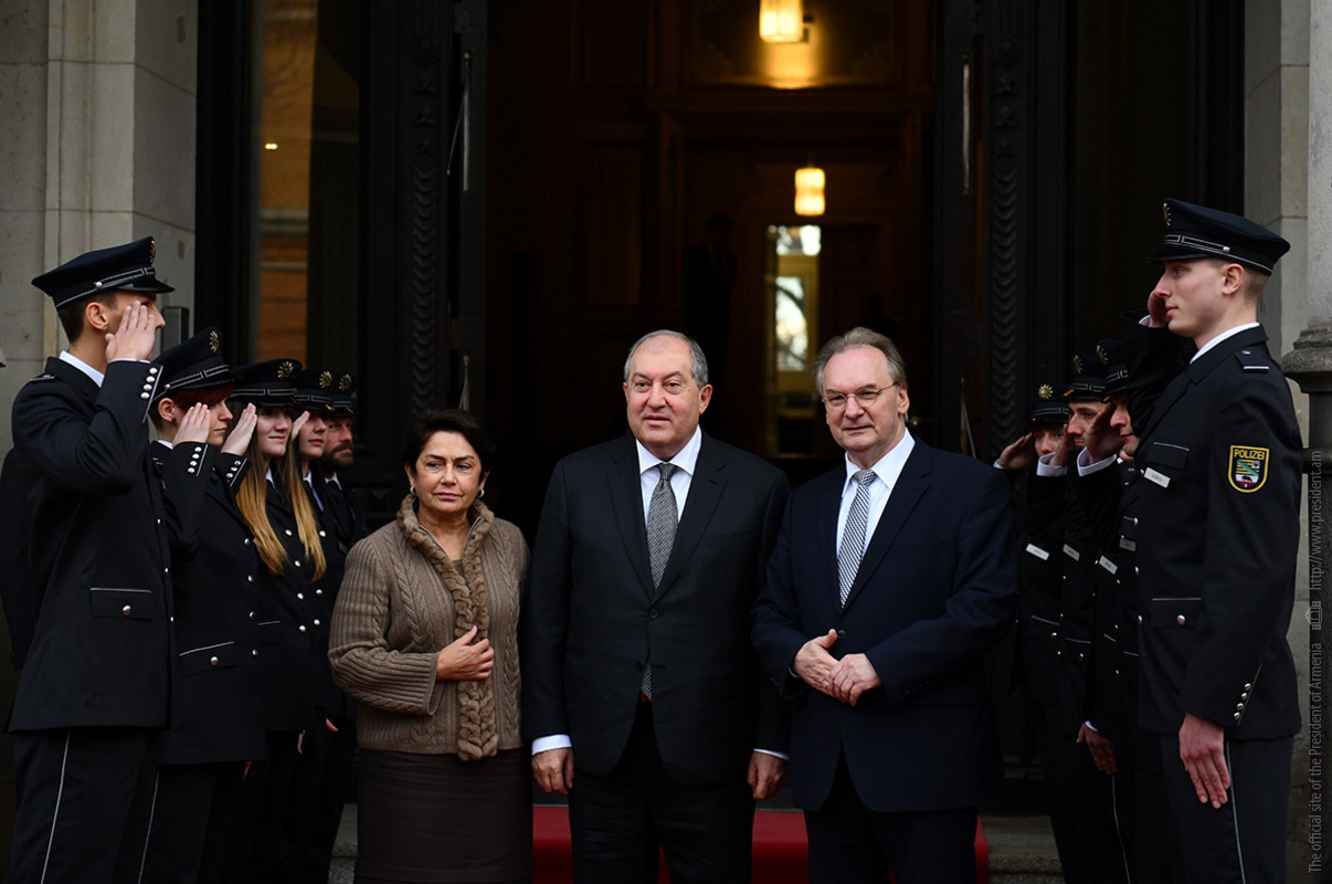 Գերմանիայի Դաշնային Հանրապետություն պաշտոնական այցի շրջանակում Հայաստանի Հանրապետության նախագահ Արմեն Սարգսյանը տիկնոջ՝ Նունե Սարգսյանի հետ մեկնել է Սաքսոնիա-Անհալթ երկրամասի մայրաքաղաք Մագդեբուրգ, որտեղ հանդիպում է ունեցել երկրամասի կառավարության ղեկավար Ռայներ Հազելոֆի հետ: