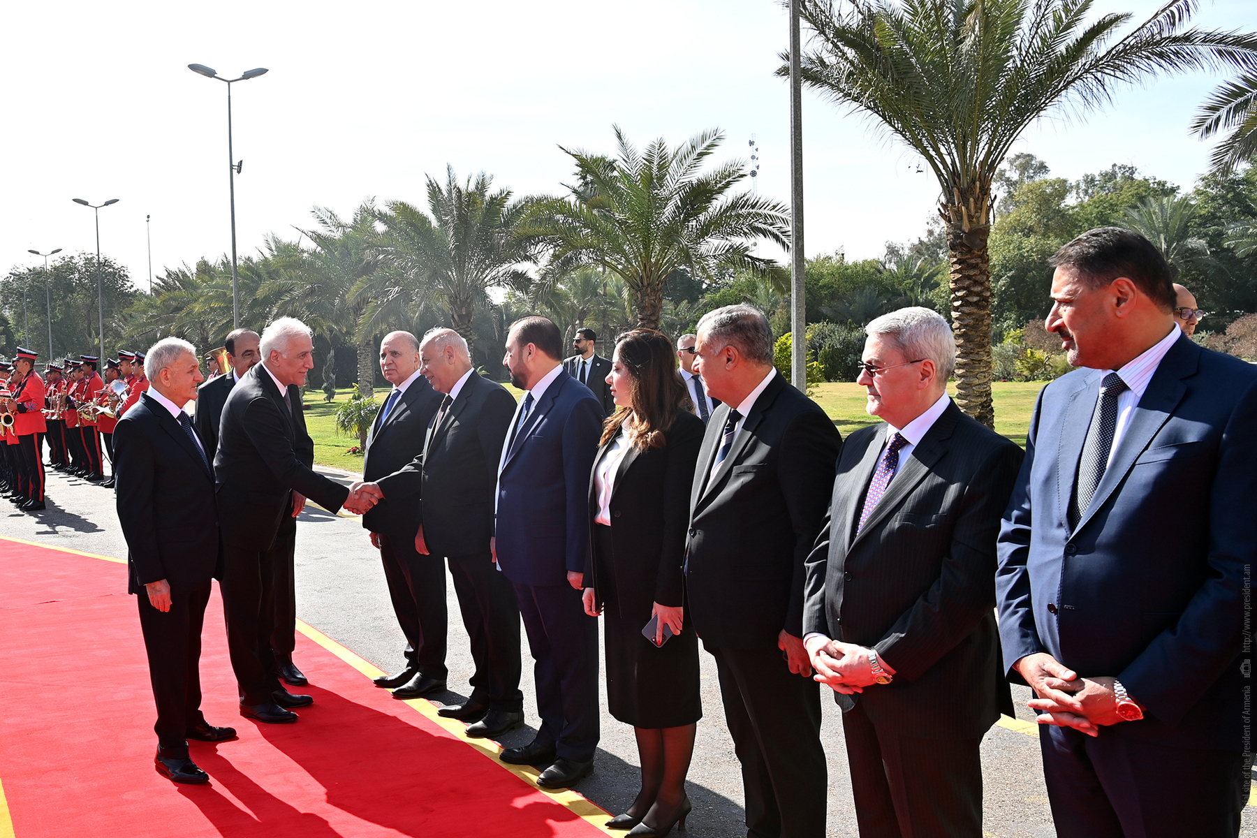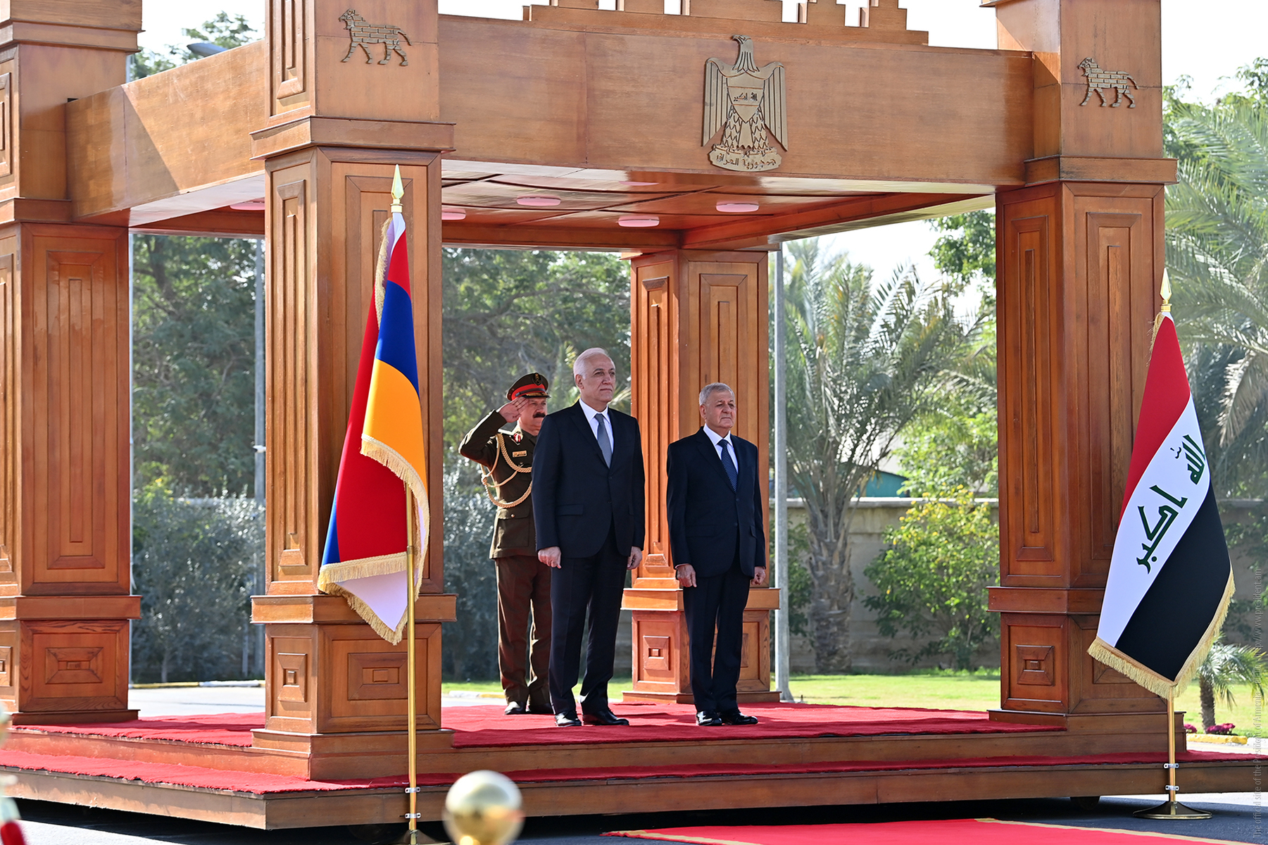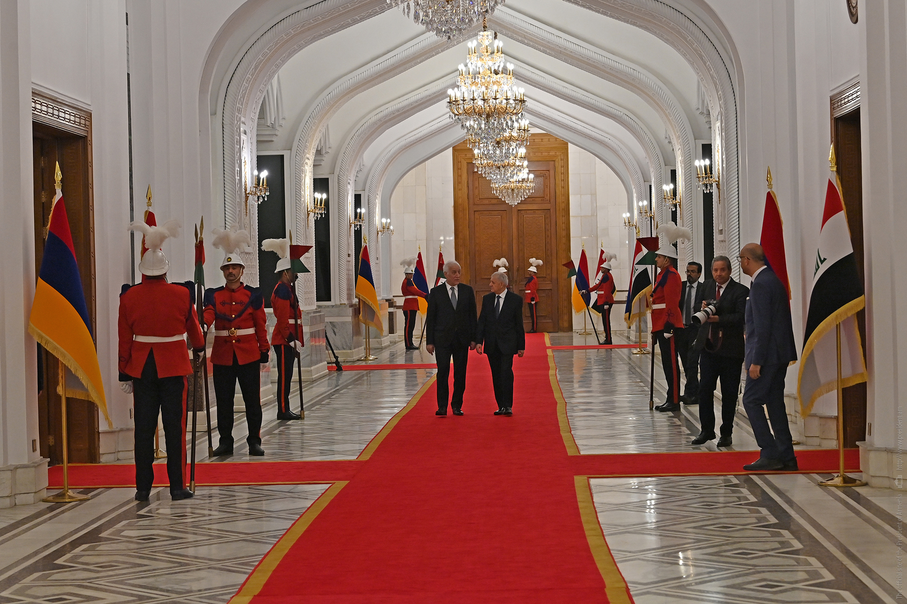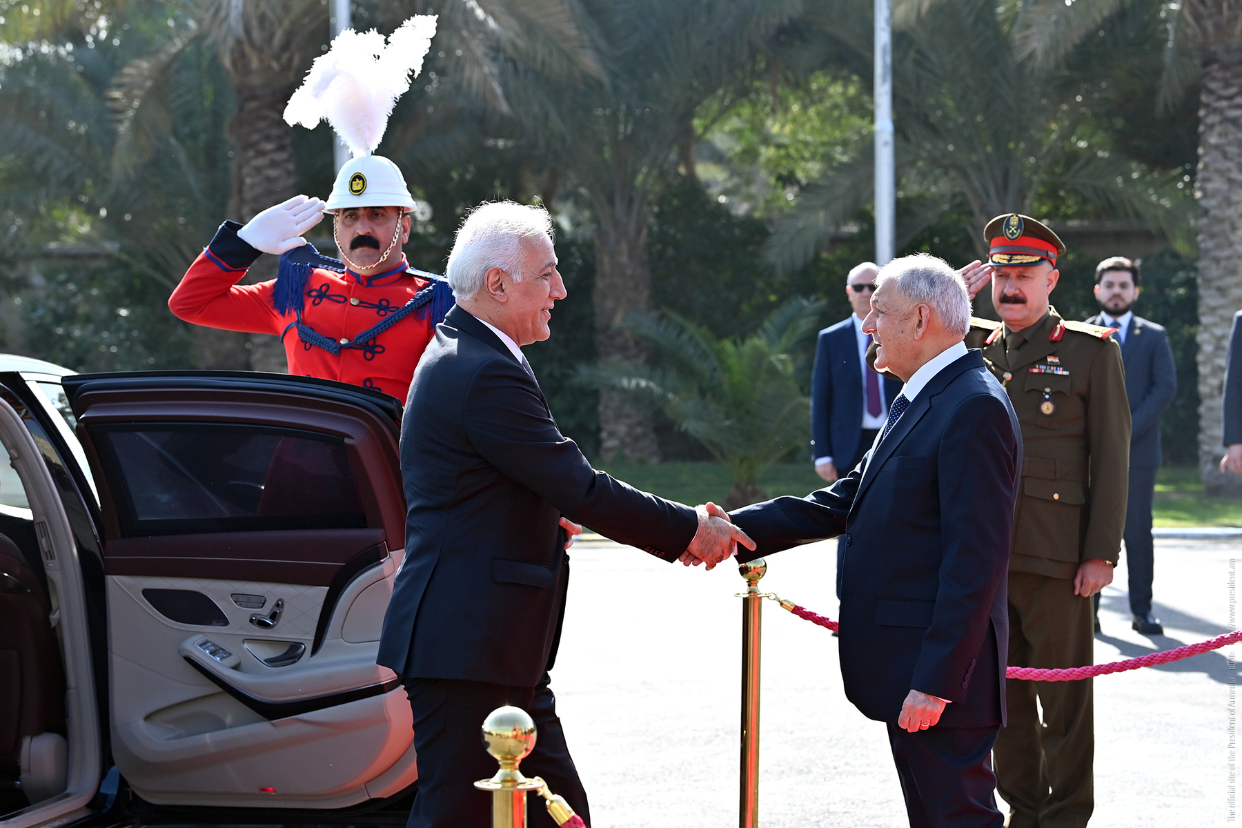 Իրաքի Հանրապետության նախագահական նստավայր «Բաղդադ Պալատում» տեղի է ունեցել նախագահ Վահագն Խաչատուրյանի դիմավորման հանդիսավոր արարողությունը: