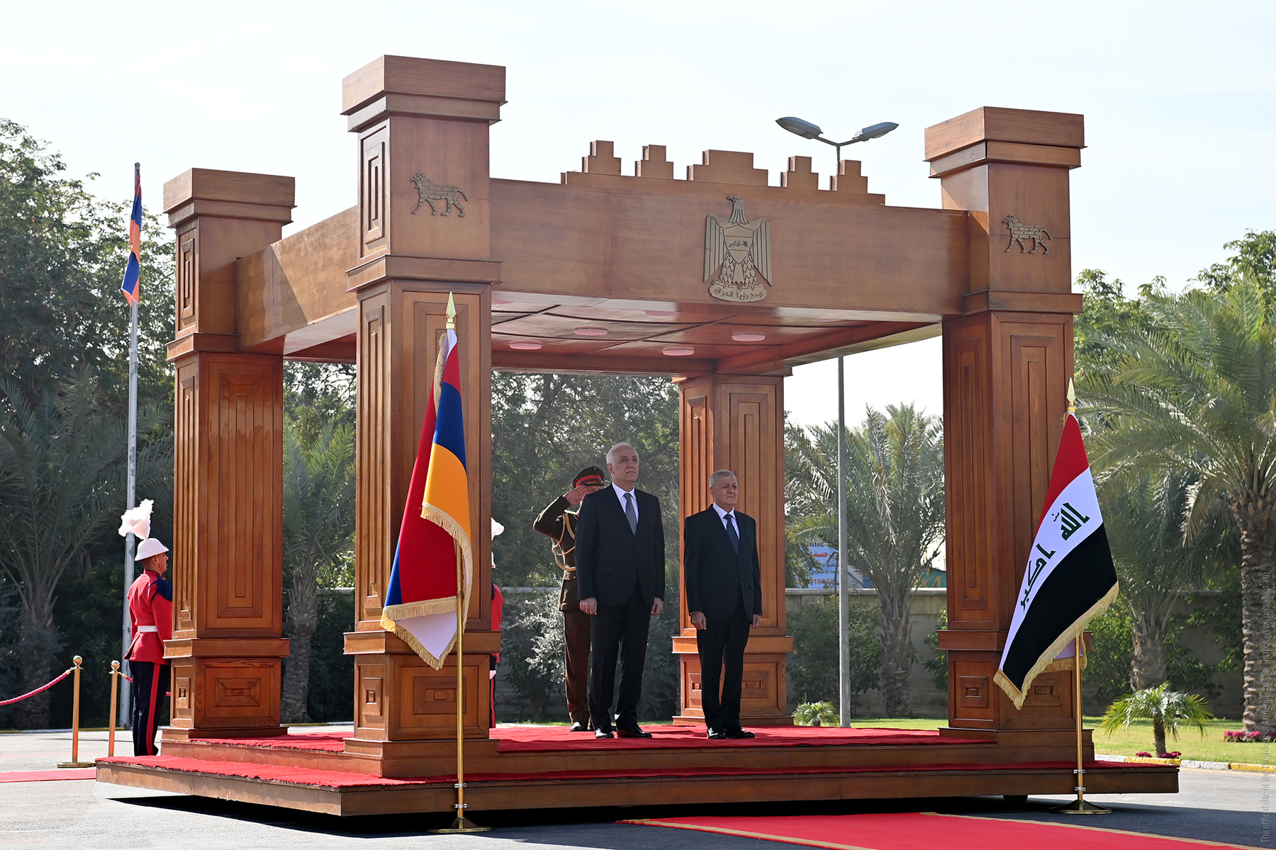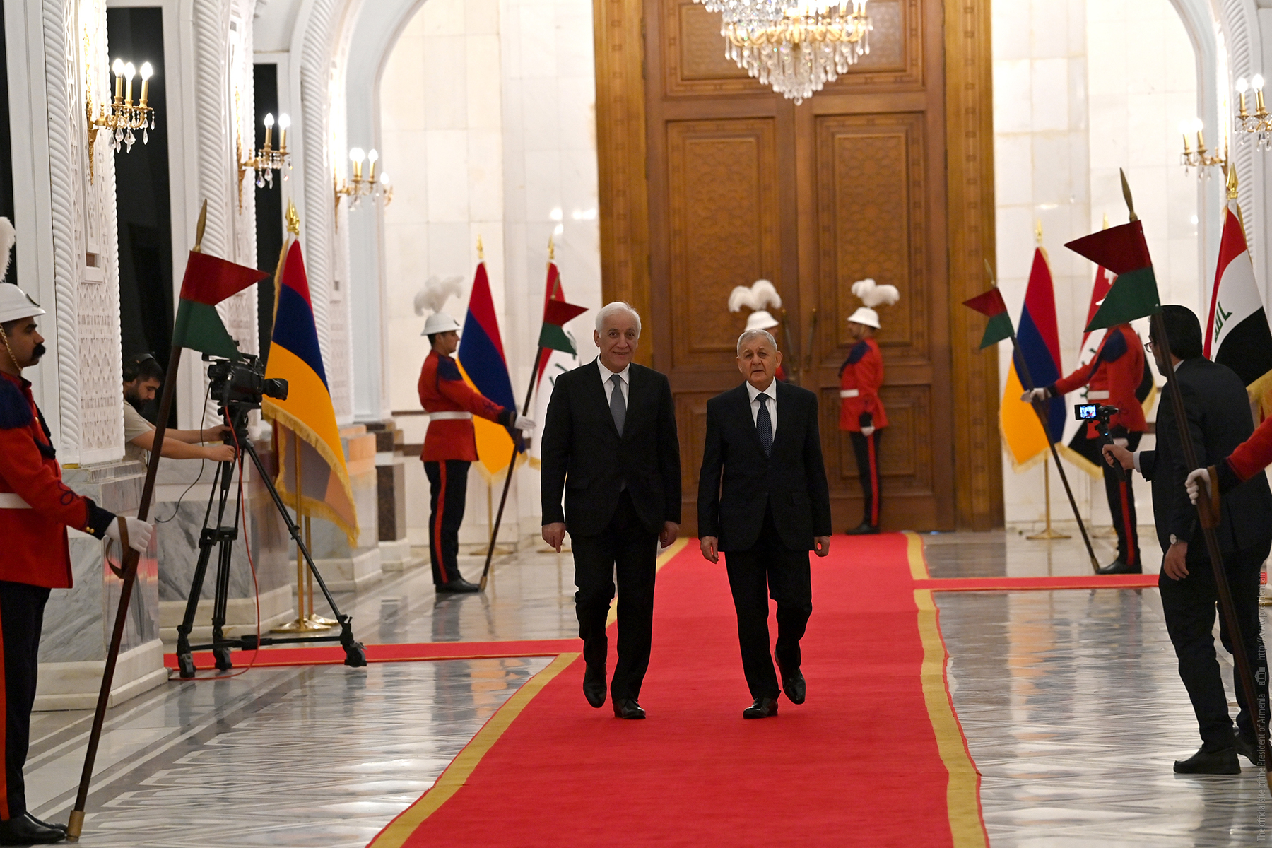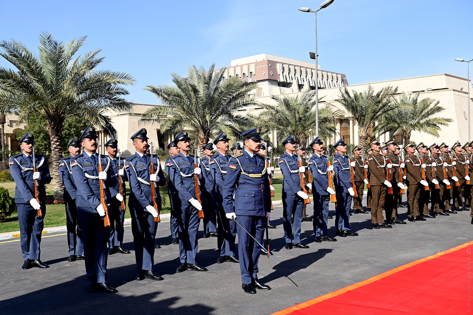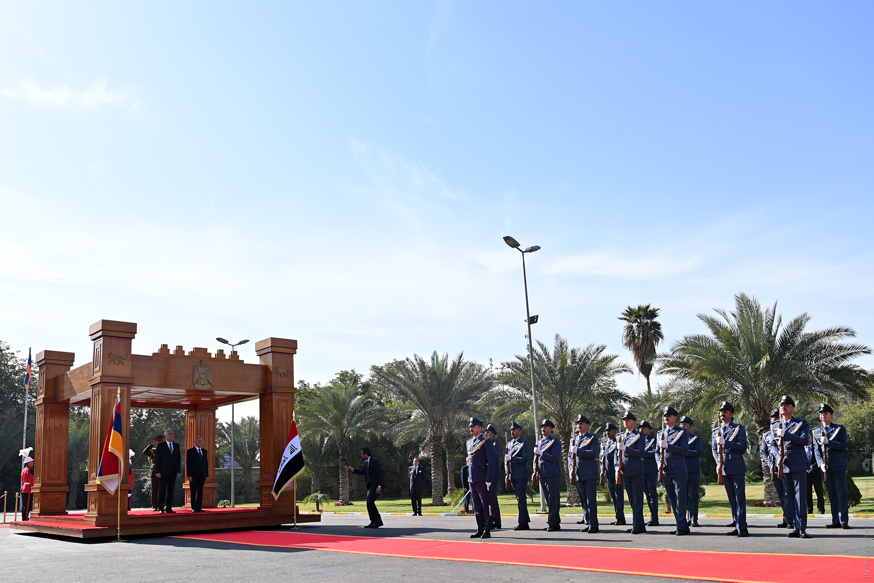Իրաքի Հանրապետության նախագահական նստավայր «Բաղդադ Պալատում» տեղի է ունեցել նախագահ Վահագն Խաչատուրյանի դիմավորման հանդիսավոր արարողությունը: