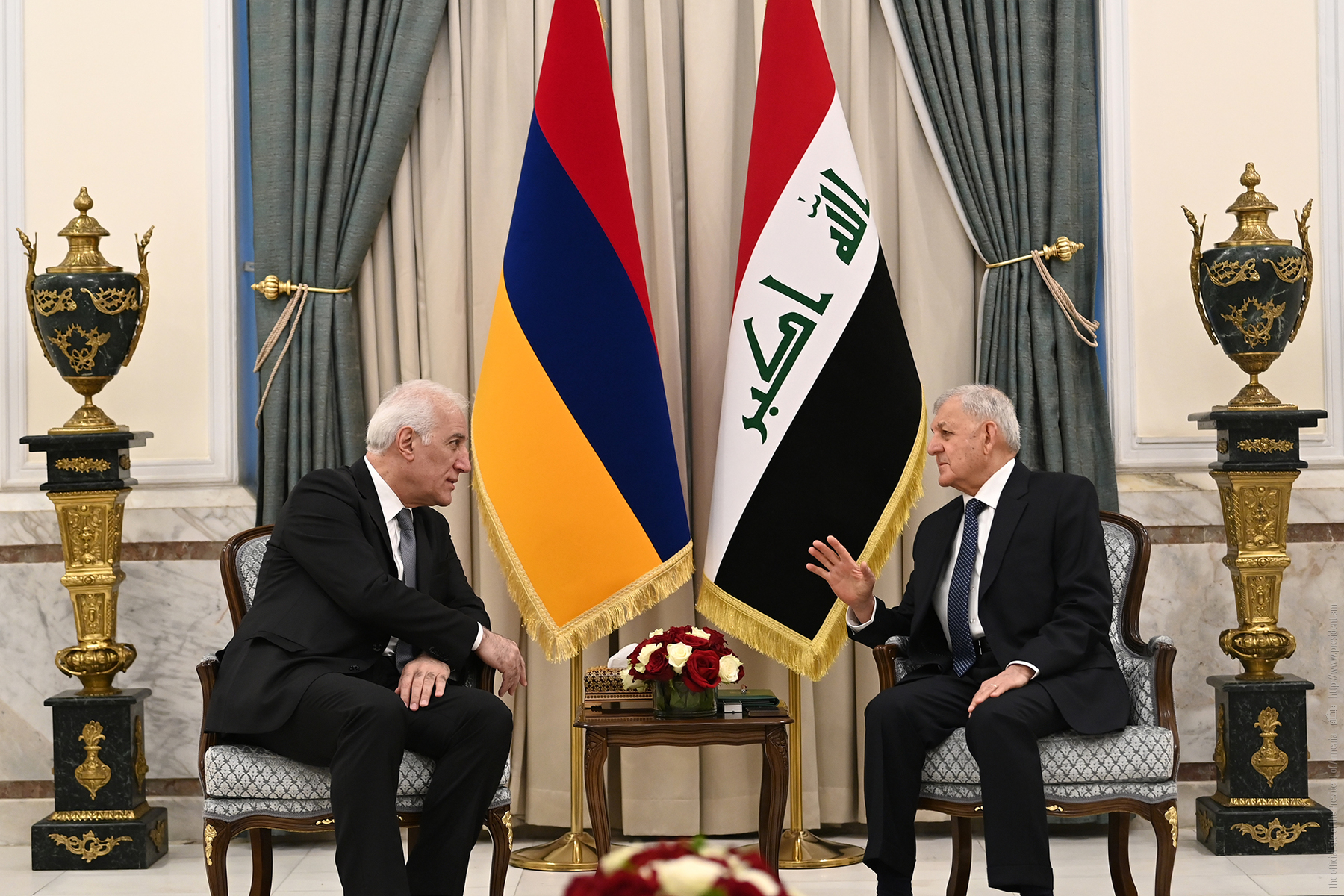 Նախագահ Ռաշիդի հետ ունեցած ջերմ զրույցի ընթացքում քննարկել ենք հայ-իրաքյան համագործակցության զարգացման լայն օրակարգը, անդրադարձել ենք փոխադարձ հետաքրքրություն ներկայացնող բազմաթիվ հարցերի: Մասնավորապես, կարևորել ենք Հայաստանի և Իրաքի Հանրապետության միջև քաղաքական երկխոսության բարձր մակարդակի պահպանումը, բարձրաստիճան փոխայցելությունների և հանդիպումների շարունակականությունը, երկու երկրների միջև տարբեր ոլորտներում առկա իրավապայմանագրային դաշտի ընդլայնումը:
