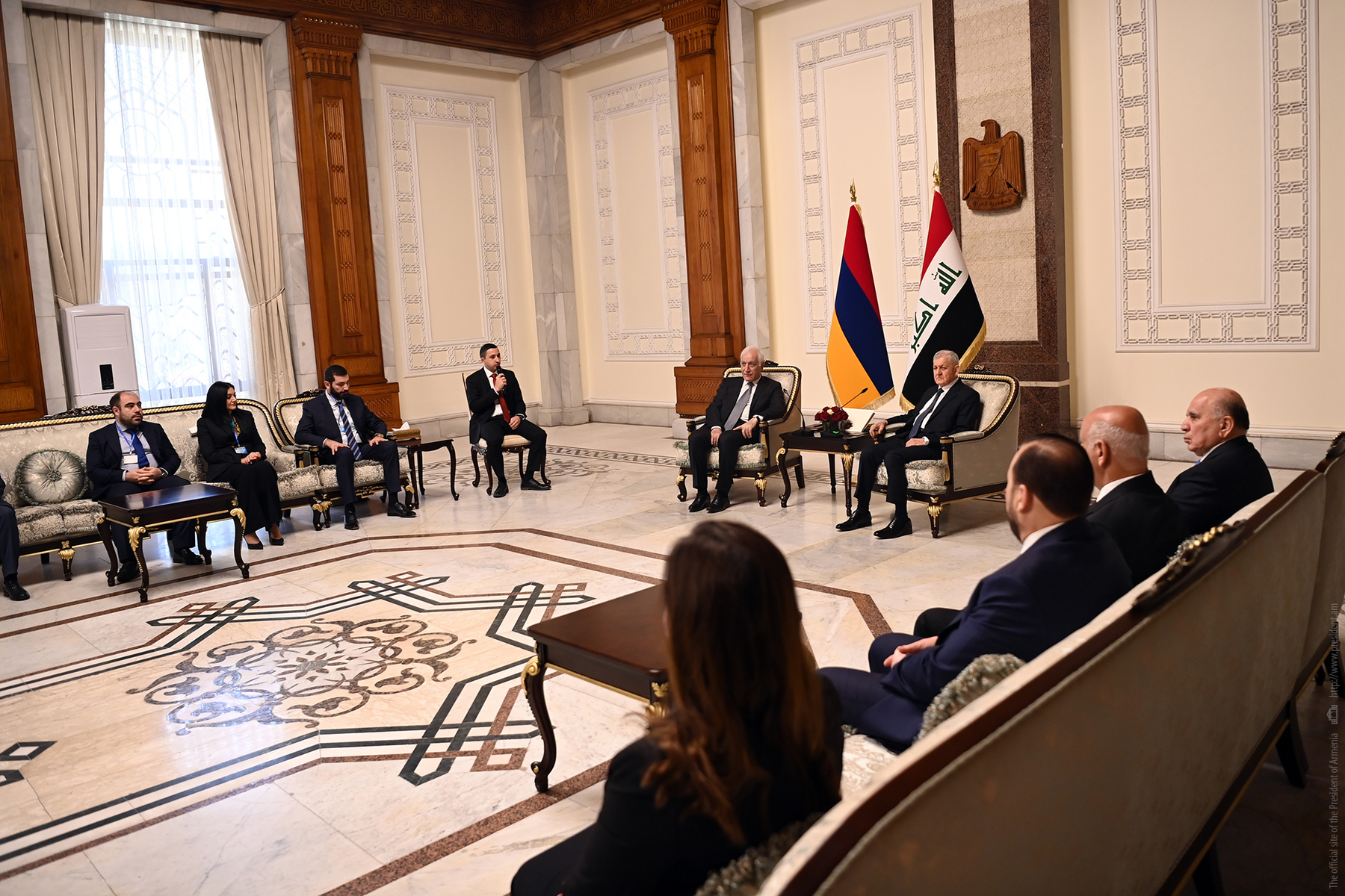 Հայ-իրաքյան հարաբերությունների համա-տեքստում կարևորել ենք Իրաքի Հանրապետության հայ համայնքի դերակատարումը: Օգտվելով առիթից՝ ցանկանում եմ ևս մեկ անգամ իմ խորին երախտագիտությունը հայտնել բարեկամ Իրաքի Հանրապետության ղեկավարությանը և ժողովրդին՝ Հայոց ցեղասպանությունից մազապուրծ եղած հայերին ապաստան տրամադրելու, ազատ ապրելու և ստեղծագործելու լայն հնարավորություններ ընձեռելու համար: Իրաքի հայերը մշտապես եղել են Ձեր երկրի լիիրավ քաղաքացիներ՝ իրենց տաղանդներով և կարողություններով նպաստելով Իրաքի բարգավաճմանն ու զարգացմանը:
