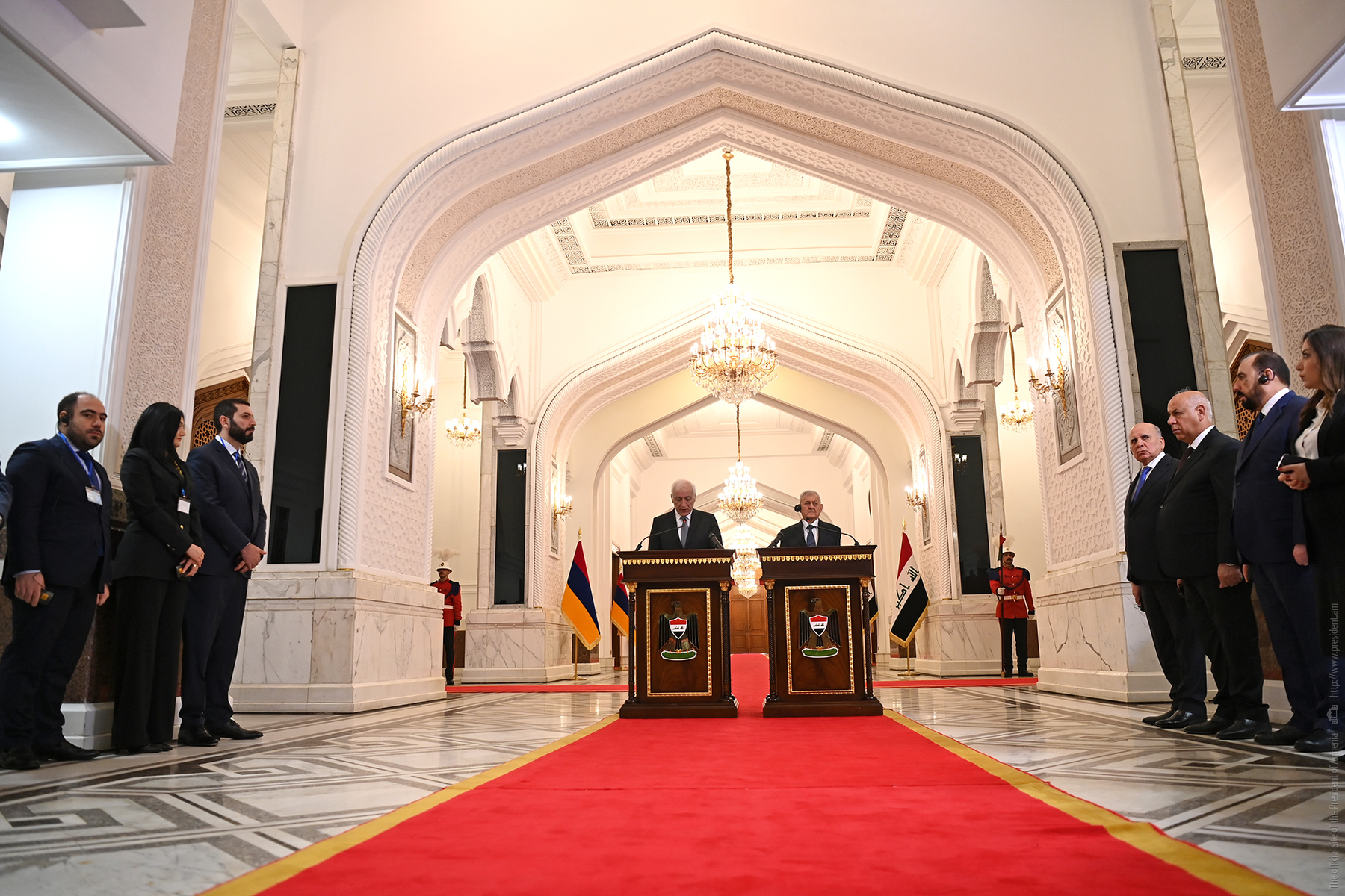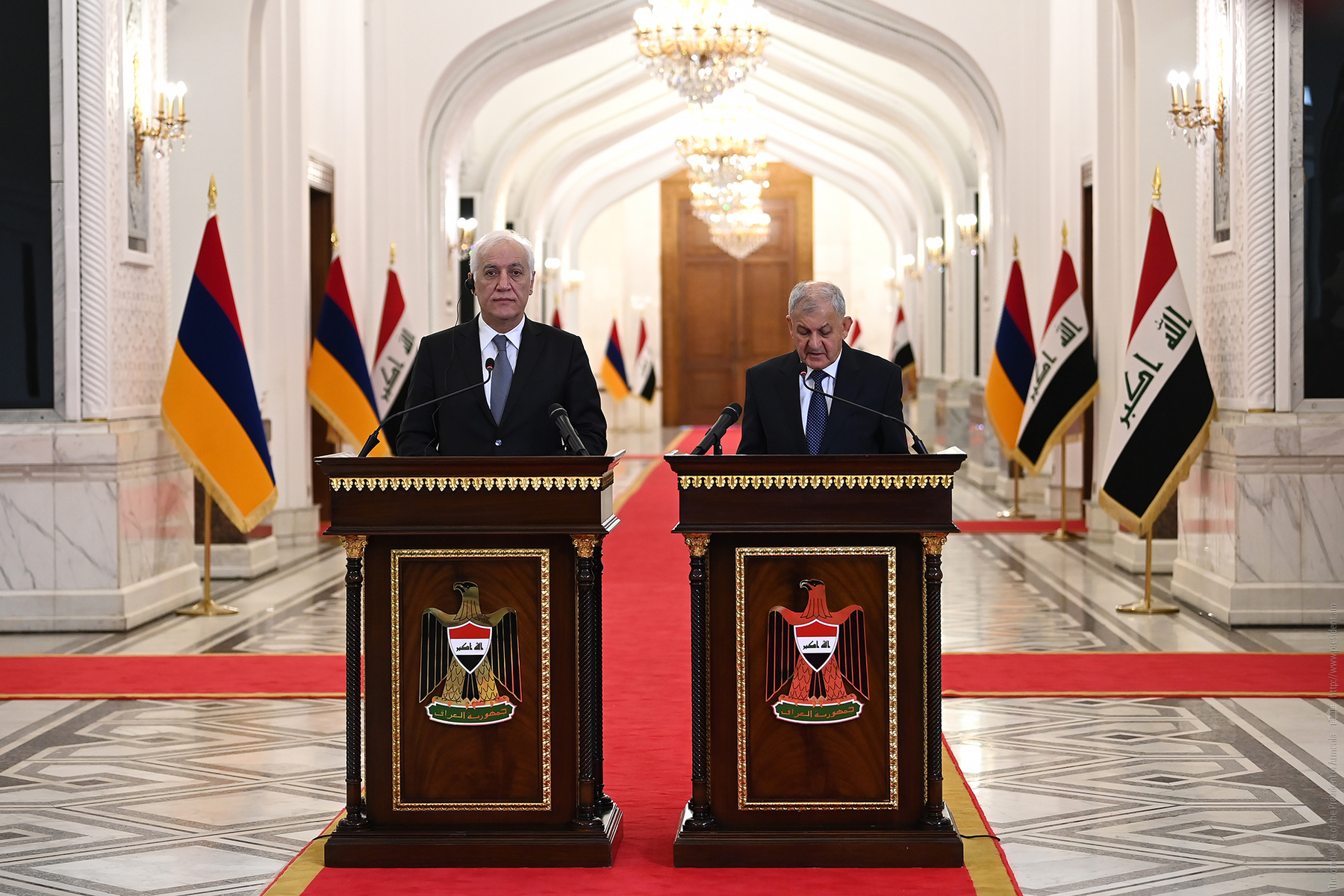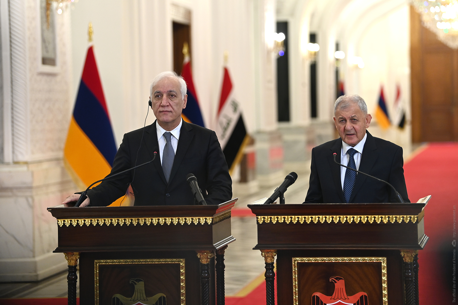 Պաշտոնական այցով Իրաքի Հանրապետությունում գտնվող նախագահ Վահագն Խաչատուրյանը և Իրաքի նախագահ Աբդ Ալ Լատիֆ Ջամալ Ռաշիդն իրենց առանձնազրույցի և երկու երկրների պատվիրակությունների ընդլայնված կազմերով հանդիպման արդյունքներն ամփոփել են լրատվամիջոցների համար հայտարարություններով: