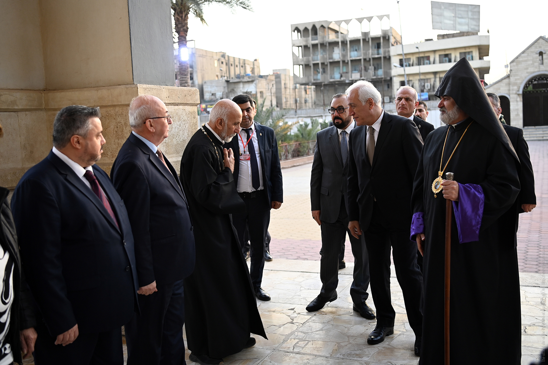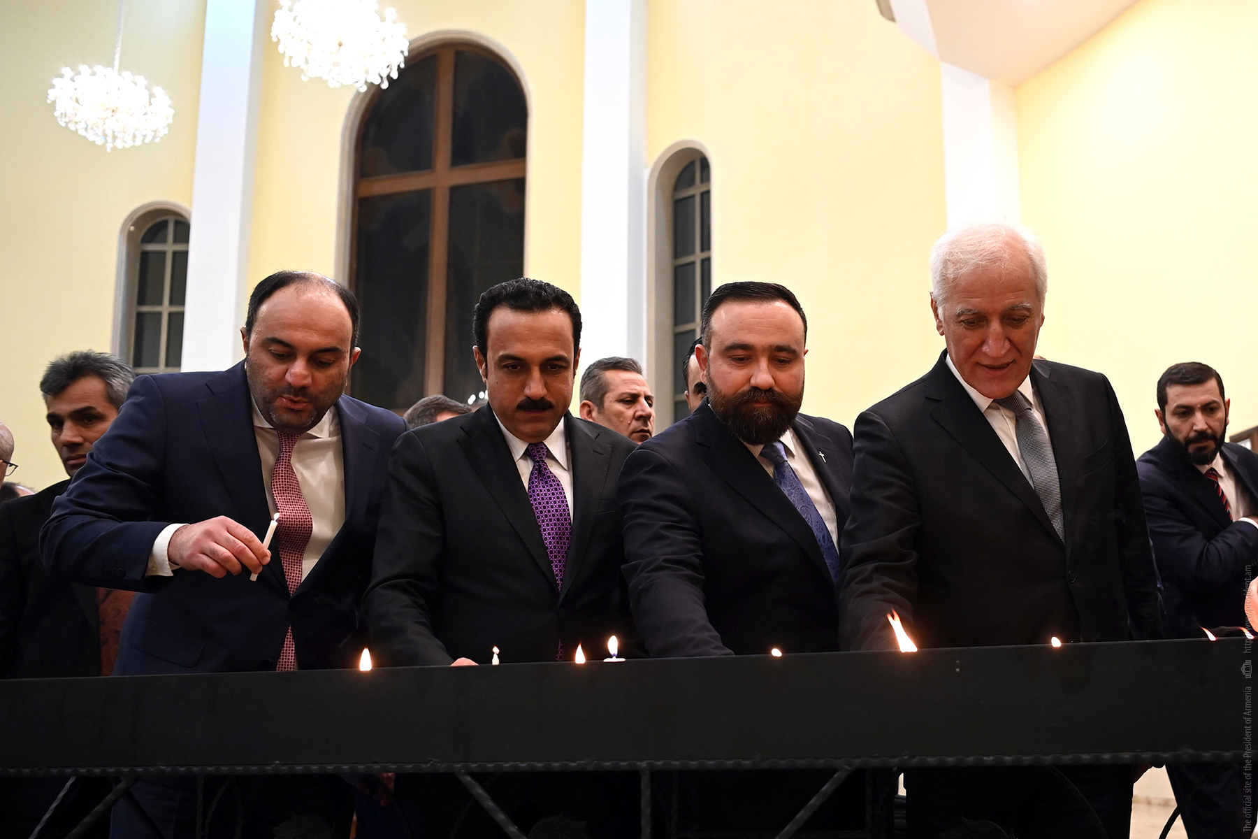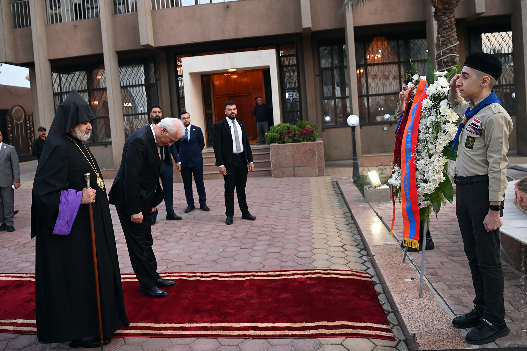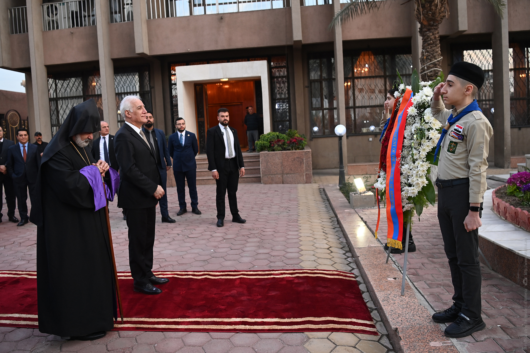 Իրաքի Հայոց թեմի առաջնորդ Օշական եպիսկոպոս Գուլգուլյանի ուղեկցությամբ նախագահը շրջայց է կատարել եկեղեցում և ծաղկեպսակ զետեղել Հայոց Ցեղասպանության զոհերի հիշատակին նվիրված հուշակոթողի մոտ։