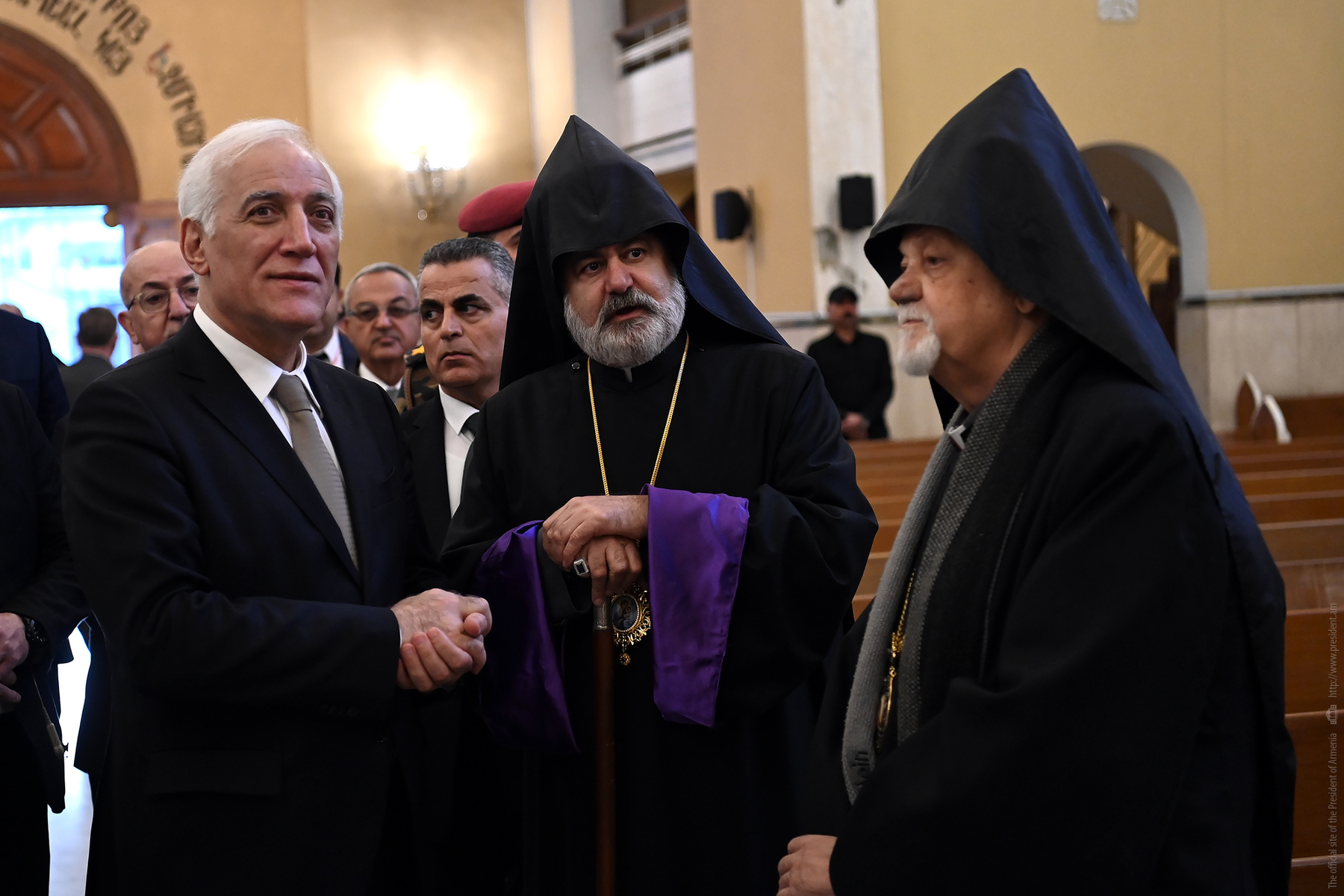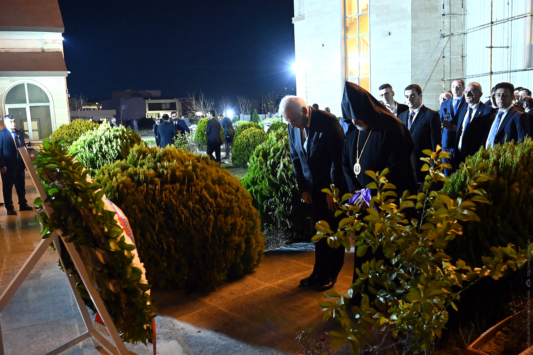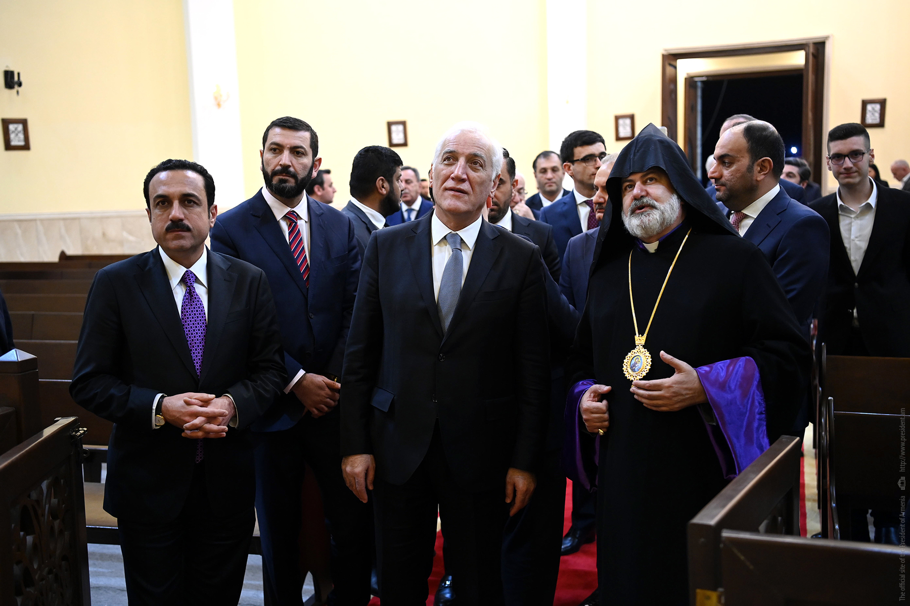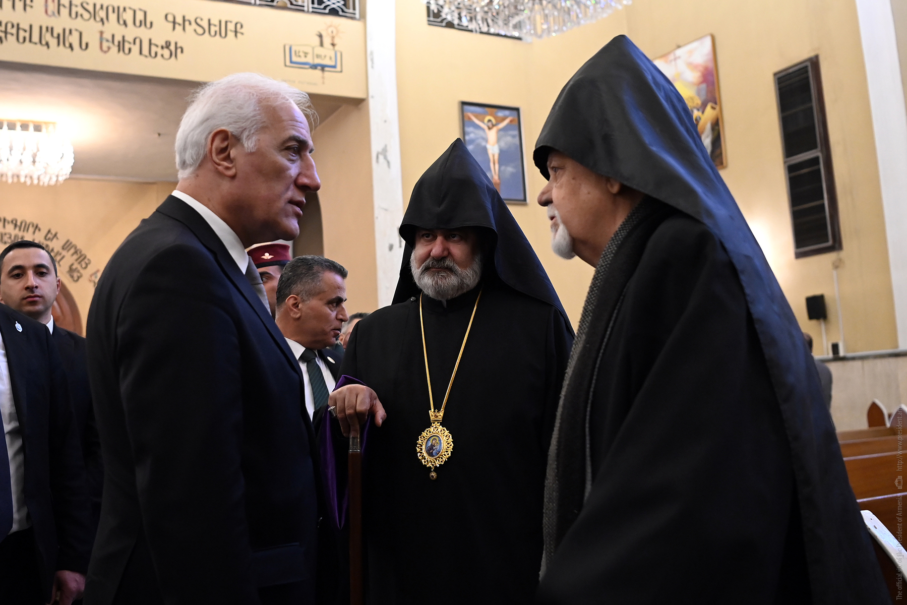 Իրաքի Հայոց թեմի առաջնորդ Օշական եպիսկոպոս Գուլգուլյանի ուղեկցությամբ նախագահը շրջայց է կատարել եկեղեցում և ծաղկեպսակ զետեղել Հայոց Ցեղասպանության զոհերի հիշատակին նվիրված հուշակոթողի մոտ։