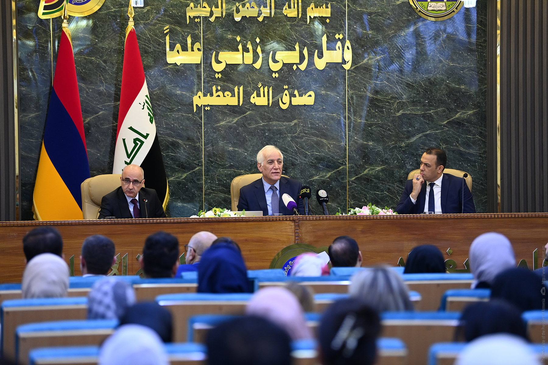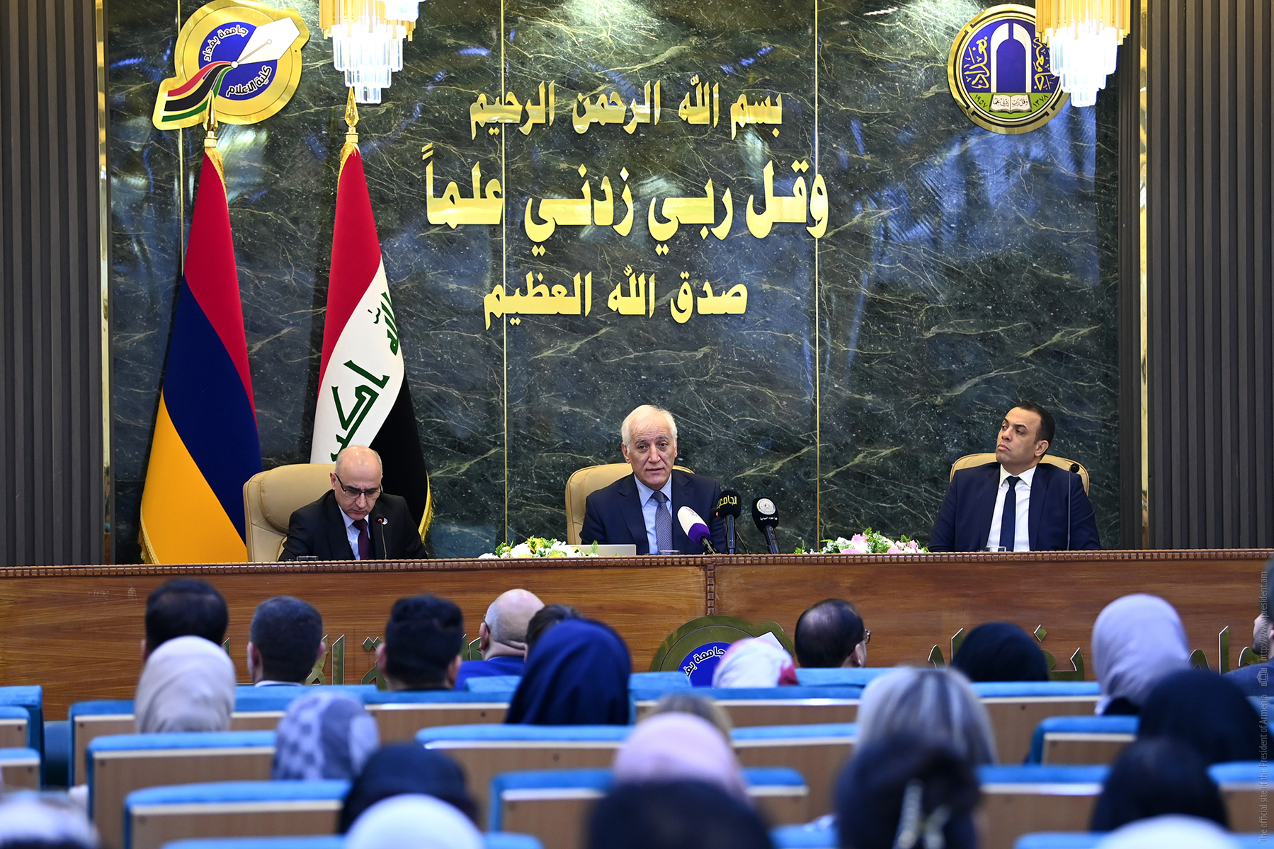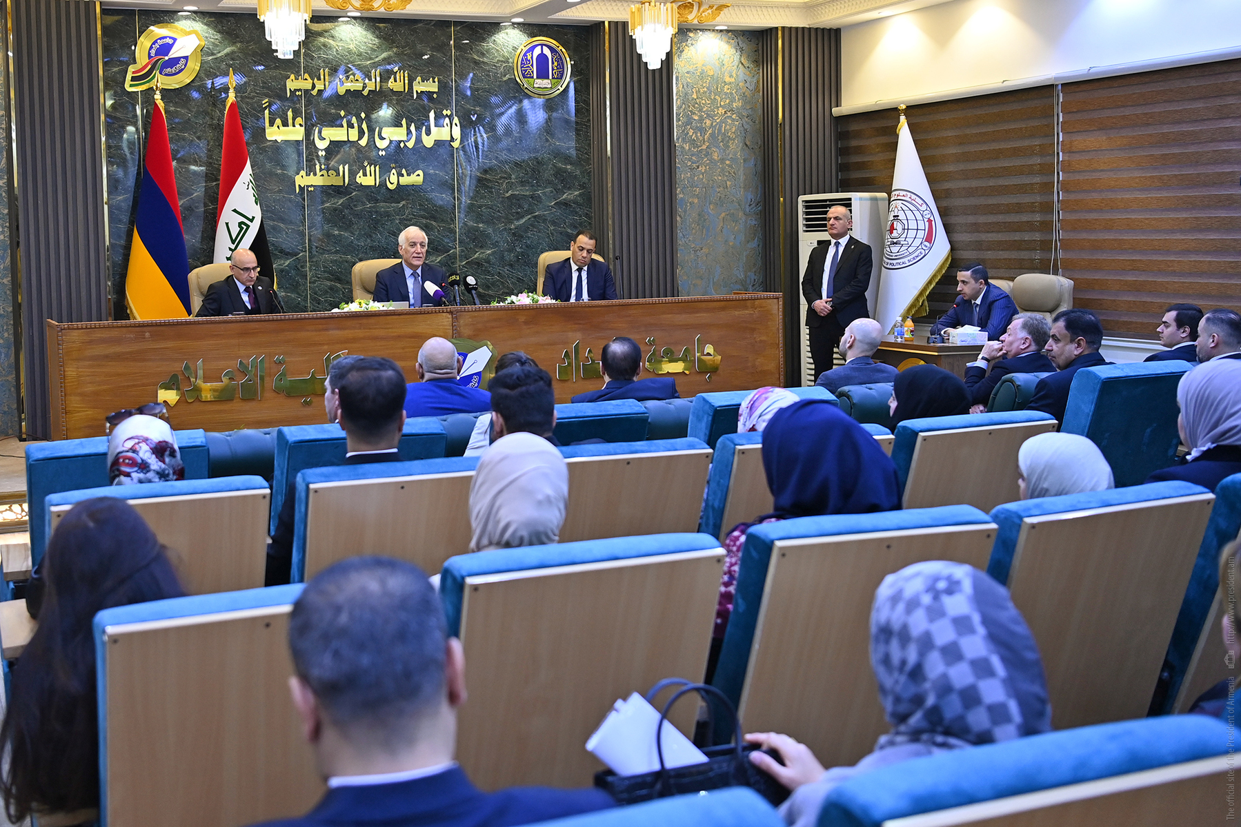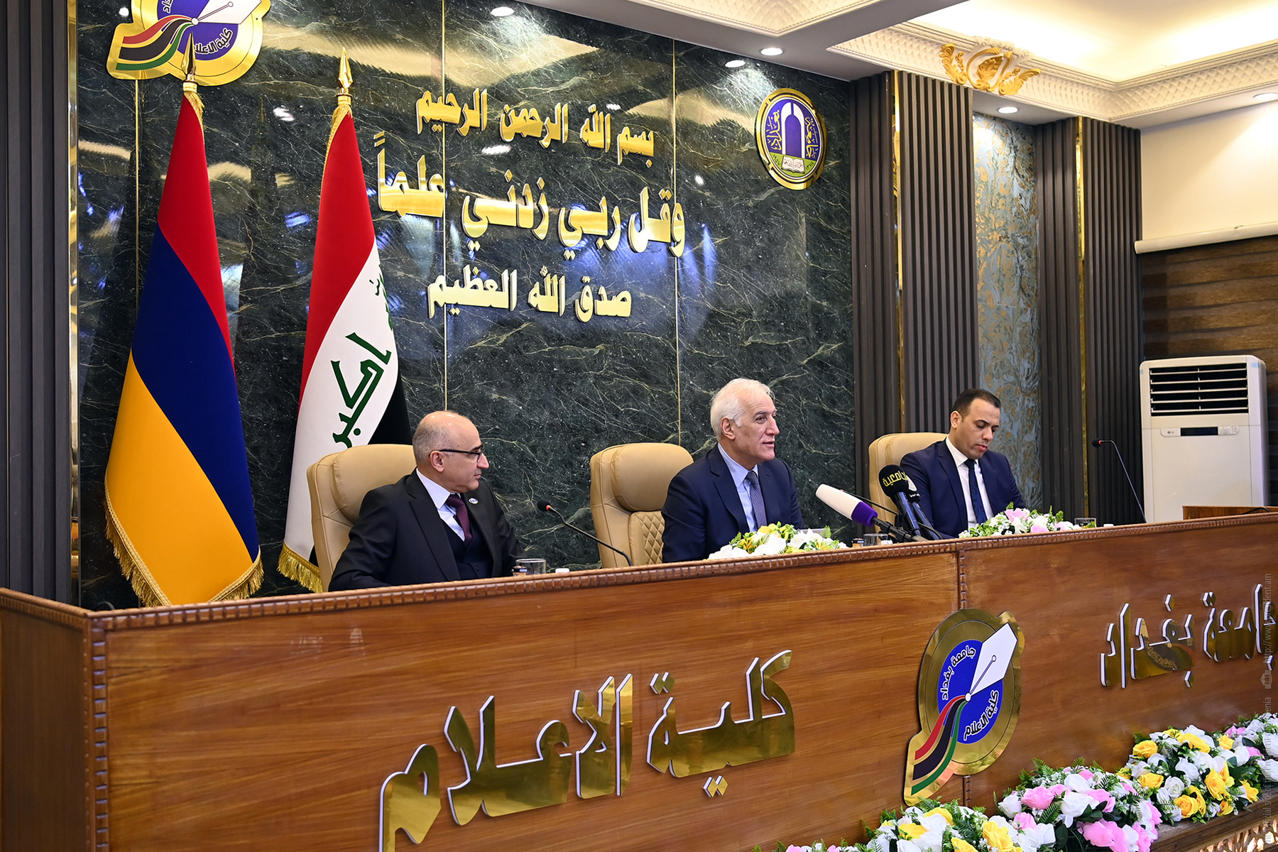 Իրաքի Հանրապետություն կատարած պաշտոնական այցի շրջանակներում Հանրապետության նախագահ Վահագն Խաչատուրյանը դասախոսություն է կարդացել Բաղդադի համալսարանում, պատասխանել հայ-իրաքյան հարաբերությունների, նախագահի պաշտոնական այցի արդյունքների և տարածաշրջանային իրողությունների վերաբերյալ դասախոսների և ուսանողների բարձրացրած հարցերին: