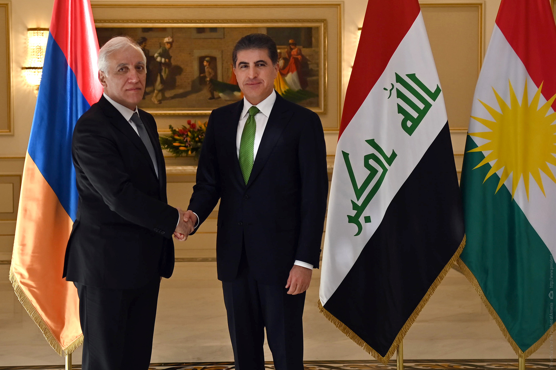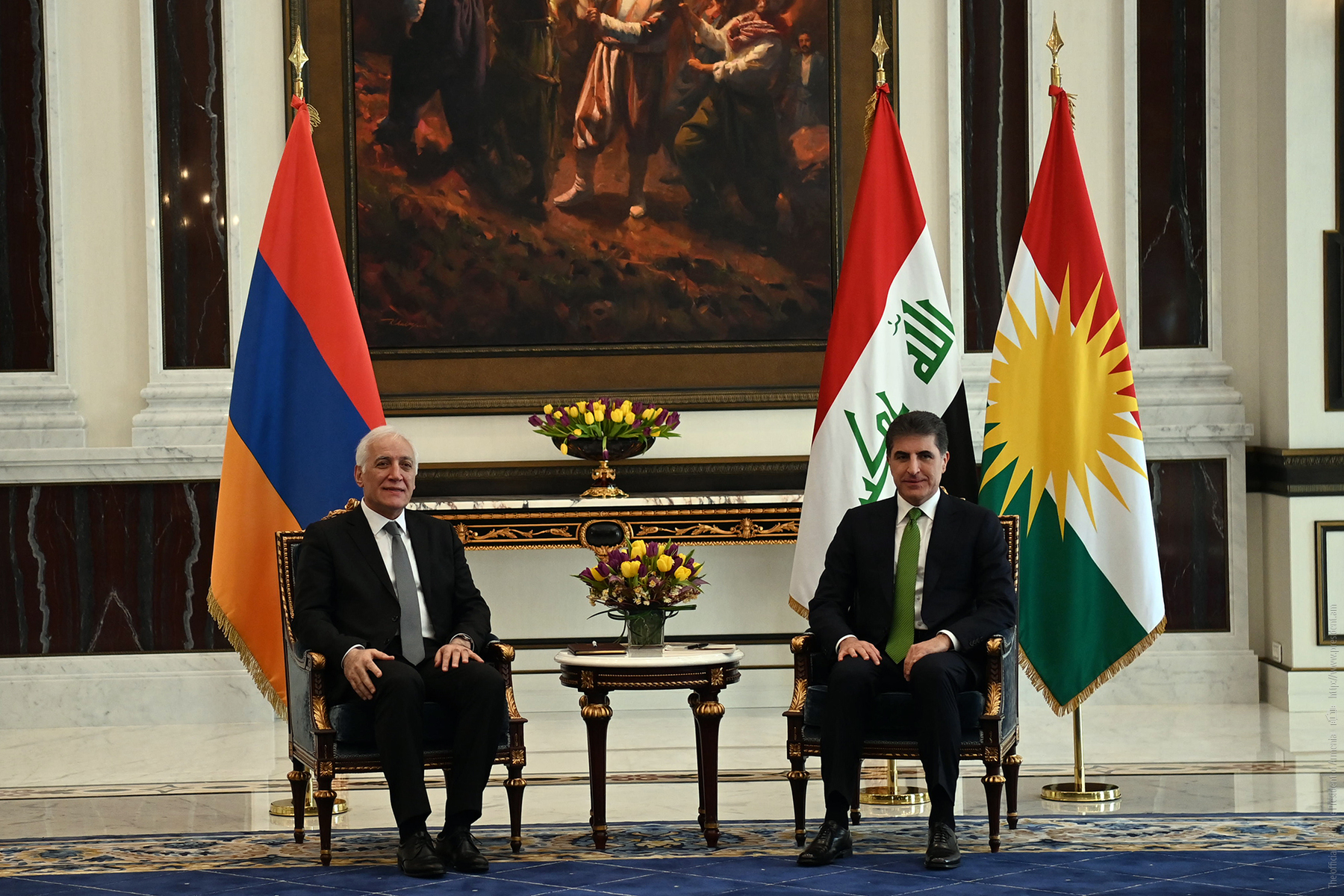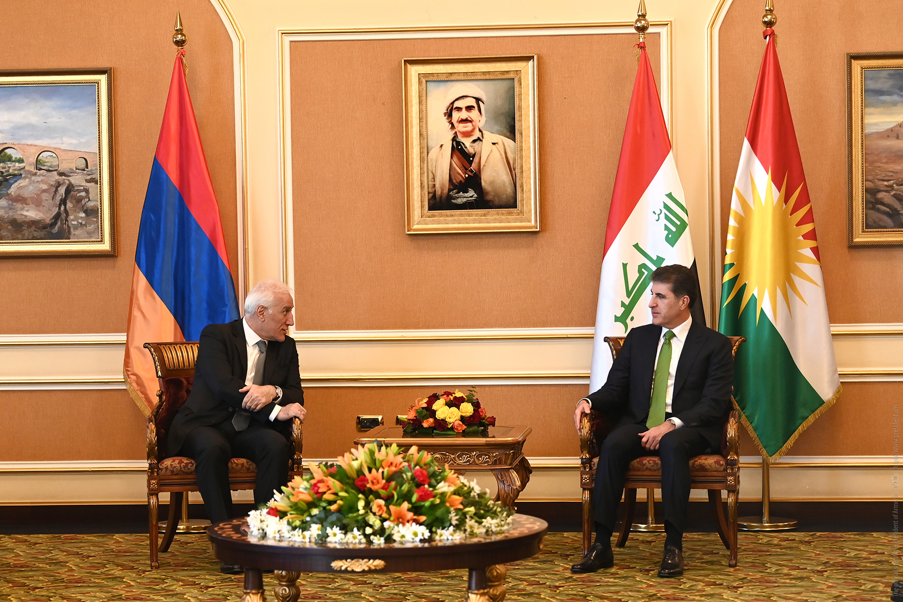 Հանրապետության նախագահ Վահագն Խաչատուրյանն Էրբիլում հանդիպում է ունեցել Իրաքյան Քուրդիստանի նախագահ Նեչիրվան Բարզանիի հետ։