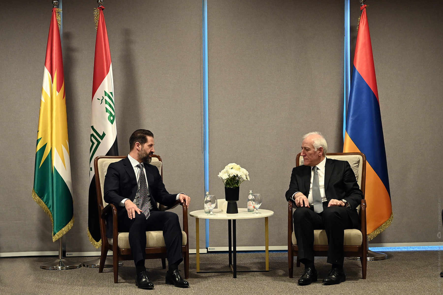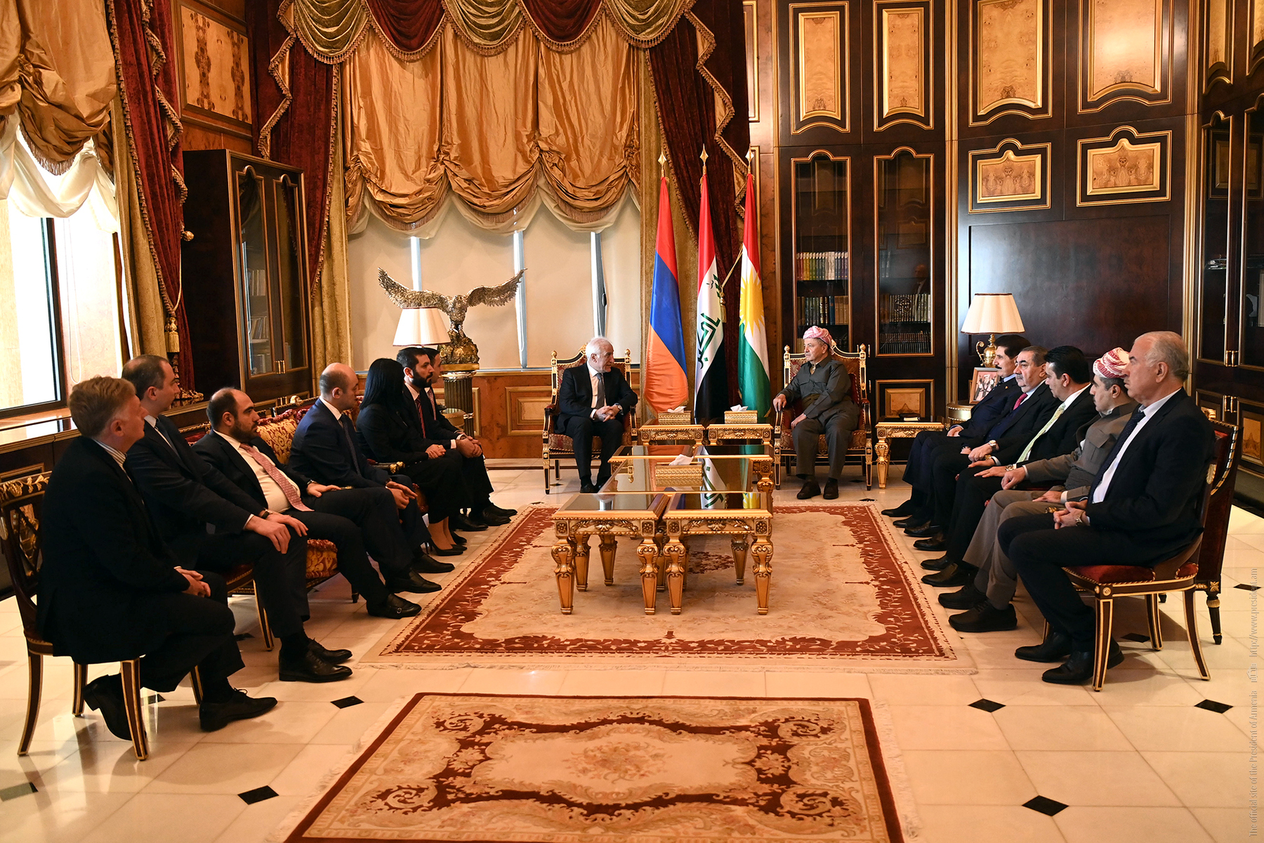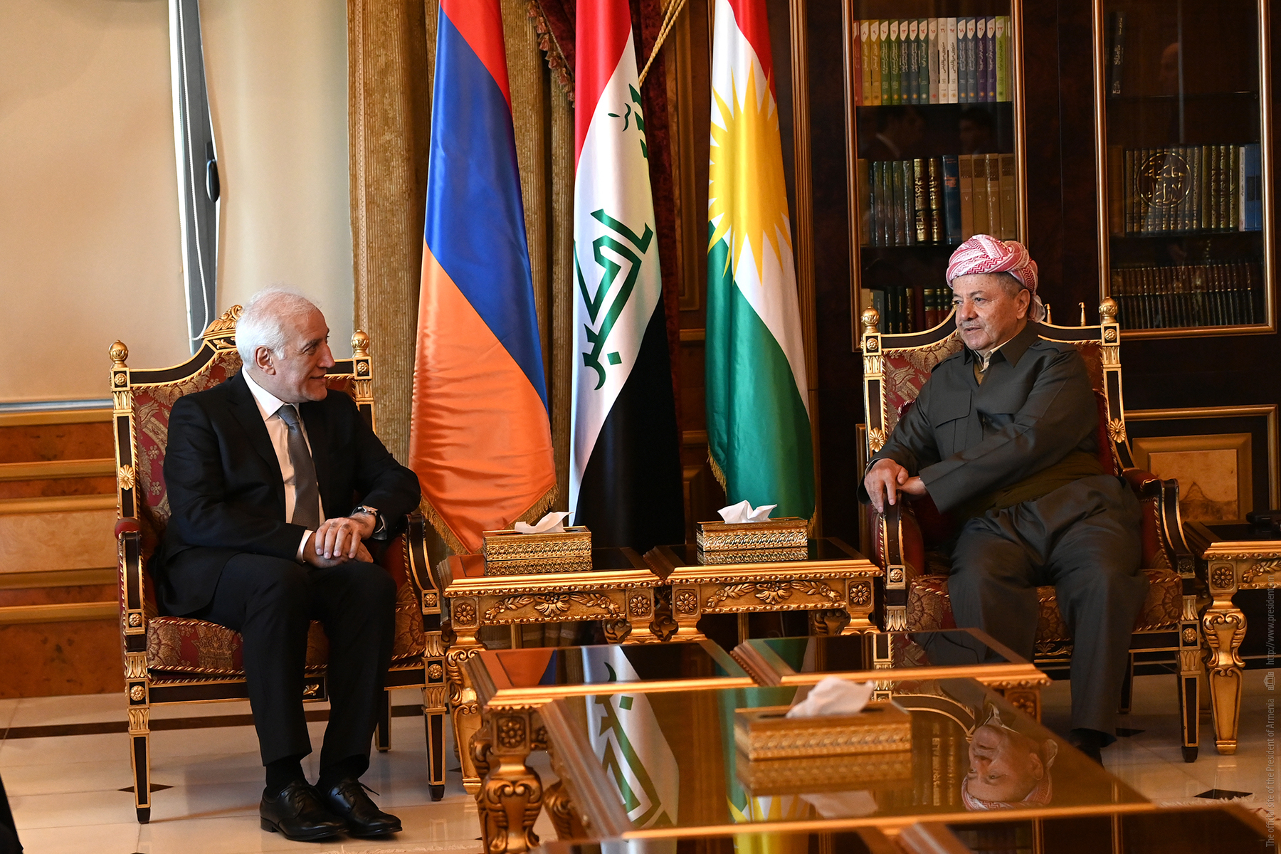 Հանրապետության նախագահ Վահագն Խաչատուրյանն Իրաքի Հանրապետություն կատարած պաշտոնական այցի շրջանակներում Իրաքյան Քուրդիստանի մայրաքաղաք Էրբիլում հանդիպում է ունեցել Իրաքյան Քուրդիստանի պատվավոր նախագահ Մասուդ Բարզանիի հետ։