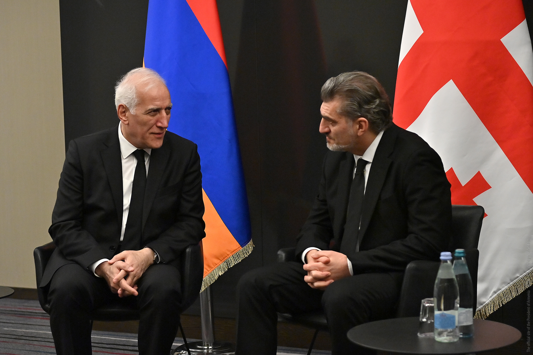 Աշխատանքային այցով Թբիլիսիում գտնվող Հանրապետության նախագահ Վահագն Խաչատուրյանն առանձնազրույց է ունեցել Վրաստանի նախագահ Միխեիլ Կավելաշվիլիի հետ։