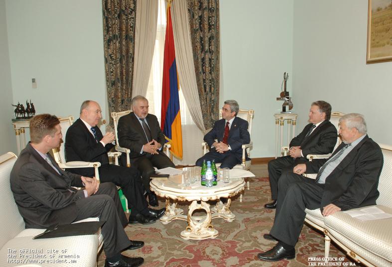 Նախագահ Սերժ Սարգսյանն այսօր ընդունել է ԵԱՀԿ Մինսկի խմբի համանախագահներ Յուրի Մերզլյակովին (Ռուսաստան), Բեռնար Ֆասիեին (Ֆրանսիա), Մեթյու Բրայզային (ԱՄՆ) եւ ԵԱՀԿ գործող նախագահի անձնական ներկայացուցիչ Անջեյ Կասպրչիկին: Հանդիպմանը մասնակցել է նաեւ ՀՀ արտաքին գործերի նախարար Էդվարդ Նալբանդյանը: