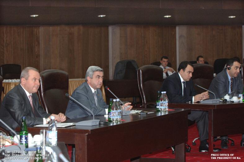 Այնուհետեւ Սերժ Սարգսյանը շնորհակալություն է հայտնել ներկաներին` հրավերն ընդունելու համար: Նշելով, որ նման հավաքները պարբերական բնույթ են կրելու, Նախագահն ասել է. "Ազգային Ժողովին եւ ժողովրդին հղած իմ ուղերձում նշել էի, որ հանդես եմ գալու երկրի համար կենսական նշանակություն ունեցող ռազմավարական հարցերի շուրջ պարբերաբար թեմատիկ խորհրդակցություններ հրավիրելու նախաձեռնությամբ, եւ հրավիրելու եմ բոլոր կուսակցությունների ղեկավարիներին: Սա այս ձեւաչափով առաջին խորհրդակցությունն է": Երկրի ղեկավարը "հույս է հայտնել, որ քննարկումների այսպիսի մեխանիզմը նպաստելու է ոչ միայն որոշումների կայացման գործընթացում կուսակցությունների դերակատարման մեծացմանն, այլեւ` քաղաքական դաշտի հետագա զարգացմանը: Այս ձեւաչափով մեր հանդիպումներից յուրաքանչյուրը նվիրված է լինելու մեկ կոնկրետ հարցի: Ես չեմ բացառում, որ ապագայում մենք կունենանք նաեւ արտագնա խորհրդակցություններ` դրանք կազմակերպելով քննարկման առարկա հանդիսացող խնդրի հետ առնչություն ունեցող վայրում` մայրաքաղաքից դուրս: Այսպիսի խորհրդակցությունների կարեւորությունը, ըստ իս, առաջին հերթին միմյանց լսելն է, կարծիքների եւ մոտեցումների բազմազանությունը հասկանալը, մեր երկրի համար կենսական նշանակություն ունեցող խնդիրների շուրջ միասնաբար խորհելը, հնարավորության դեպքում` առանձին հարցերի վերաբերյալ միասնական դիրքորոշման ձեւավորումը: Մեր քննարկումներն այսօր, եւ այսուհետ, անցկացվելու են, այսպես ասած, առանց հղումների, "փակ քննարկում" ձեւաչափով: Այս ձեւաչափը հնարավորություն կտա, որպեսզի բոլոր մասնակիցներն անկաշկանդ ներգրավվեն քննարկումներին եւ ազատ լինեն ցանկացած մոտեցում արտահայտելու հարցում: Իսկ առանց հղումների նշանակում է, որ այս հանդիպումից հետո` մեր հրապարակային գործունեության ընթացքում մենք կարող ենք հիմնվել այստեղ հնչեցված մտքերի վրա, բայց պայմանավորվում ենք, որ ուղղակի հղումներ չենք կատարում":