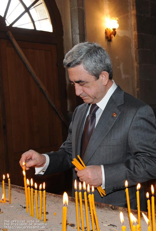 Երկրի ղեկավարն այցելել է նաեւ Գորիսի "Ս. Գրիգոր Տաթեւացի" եկեղեցի, ապա քաղաքի "Վիենի պուրակ"-ում մասնակցել է ֆրանսիական պարտիզանական շարժման ղեկավարներից մեկի` Միսաք Մանուշյանի հիշատակին նվիրված խաչքարի բացման արարողությանը: