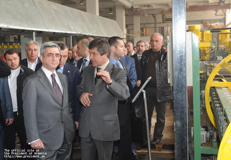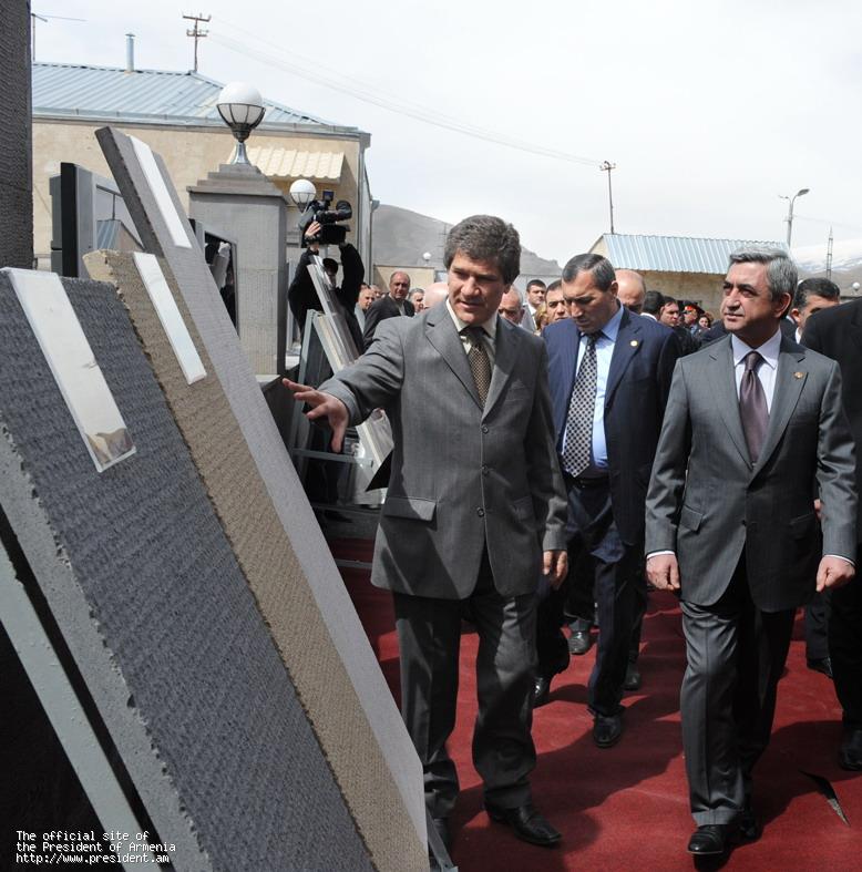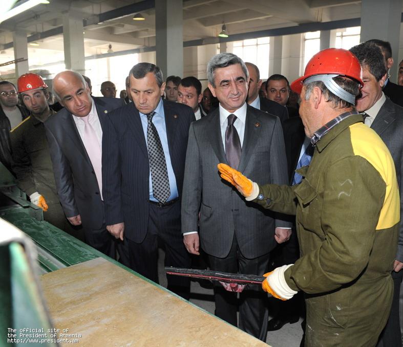 Նախագահ Սարգսյանը Սյունիքի մարզ այցն ավարտել է Սիսիանի "Վի Էյջ Սթոուն" քարերի մշակման գործարան այցելությամբ: Ձեռնարկությունը հիմնվել է 2000թ., գործունեությունը բնական քարերի արդյունահանումն ու մշակումն է: Գործարանը հագեցած է ժամանակակից սարքավորումներով, տեխնոլոգիական սխեման հնարավորություն է տալիս կազմակերպել անթափոն արտադրություն: Ձեռնարկության ղեկավարությունը նախատեսում է 2009թ. հիմնել նաեւ քարերի ձեւավոր մշակման արտադրամաս: