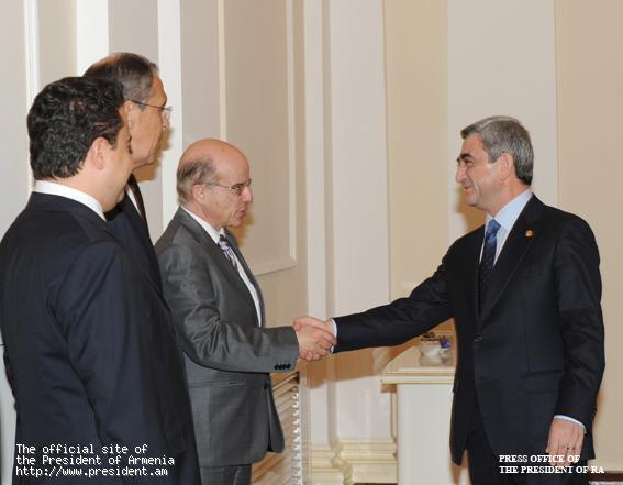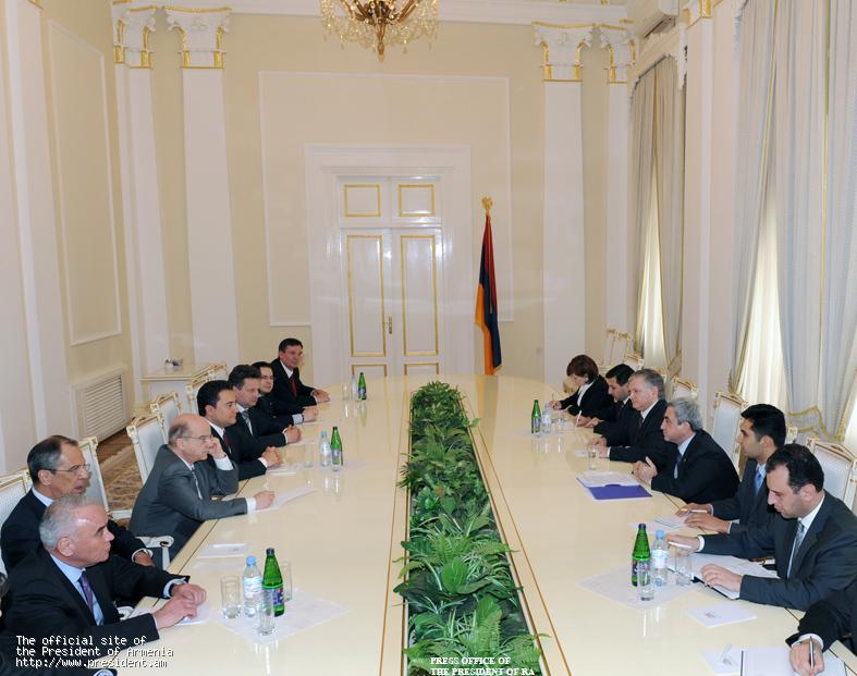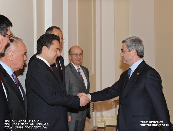 Նախագահ Սերժ Սարգսյանն այսօր ընդունել է Սեւծովյան տնտեսական համագործակցության կազմակերպության անդամ երկրների արտաքին գործերի նախարարների խորհրդի 20-րդ նիստին մասնակցելու նպատակով Հայաստան ժամանած Ռուսաստանի եւ Թուրքիայի արտգործնախարարներին, Կազմակերպության անդամ երկրների արտաքին քաղաքական գերատեսչությունների բարձրաստիճան պաշտոնյաներին, ՍԾՏՀ կազմակերպության գլխավոր քարտուղարին: