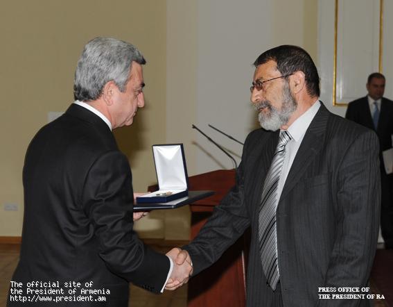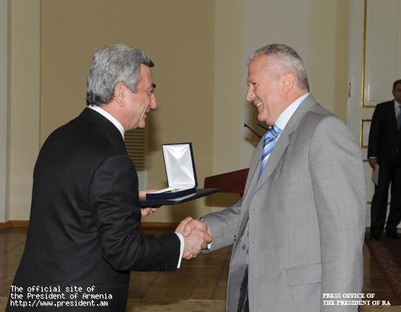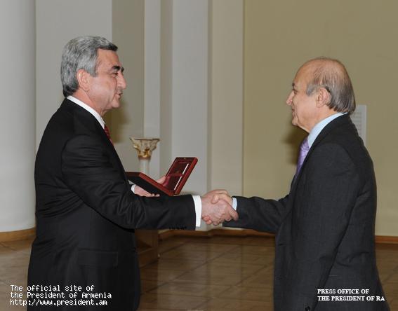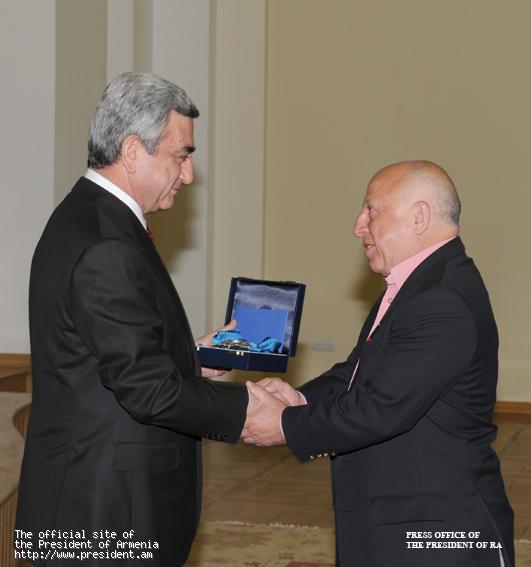 Հանրապետության տոնի կապակցությամբ Նախագահ Սերժ Սարգսյանն այսօր պետական պարգեւներ եւ կոչումներ է հանձնել պետական գործիչների, գիտության, մշակույթի, արվեստի, ճարտարապետության, առողջապահության, լրագրության բնագավառների մի խումբ ներկայացուցիչների, ովքեր պարգեւատրվել էին երկրի ղեկավարի մայիսի 26-ի հրամանագրերով: