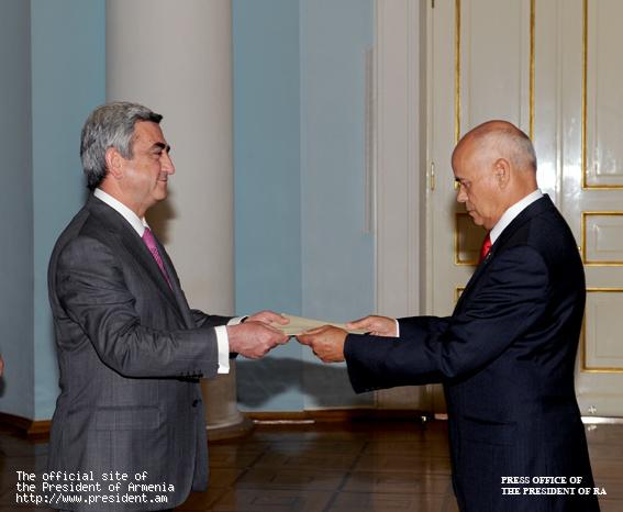 Նախագահ Սերժ Սարգսյանին իր հավատարմագրերն է հանձնել Վենեսուելայի նորանշանակ դեսպանը