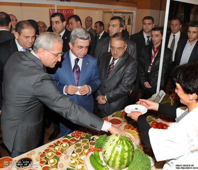 Երկրի ղեկավարը շրջել է ցուցահանդեսի տաղավարներում, ծանոթացել սննդի արդյունաբերությամբ զբաղվող տեղական և օտարերկրյա շուրջ 65 ձեռնարկությունների ներկայացրած ապրանքատեսականու հետ, համտեսել դրանք: