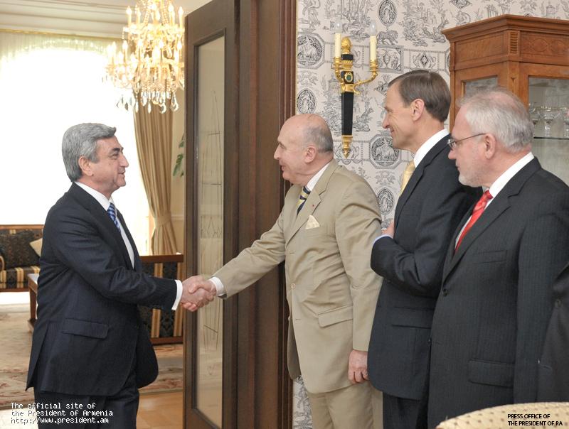ՀՀ նախագահն այնուհետեւ հանդիպում է ունեցել ԵԱՀԿ Մինսկի խմբի համանախագահներ Իգոր Պոպովի (Ռուսաստան), Բեռնար Ֆասիեի (Ֆրանսիա), Ռոբերտ Բրադկեի (ԱՄՆ) եւ ԵԱՀԿ գործող նախագահի անձնական ներկայացուցիչ Անջեյ Կասպրչիկի հետ: Քննարկվել են ԼՂ հակամարտության կարգավորման ներկա փուլին վերաբերող հարցեր: