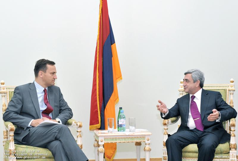Նախագահ Սարգսյանն ընդունել է Լեհաստանի արտգործնախարար Ռադոսլավ Սիկորոսկուն