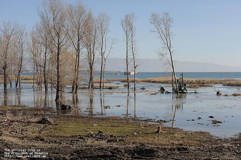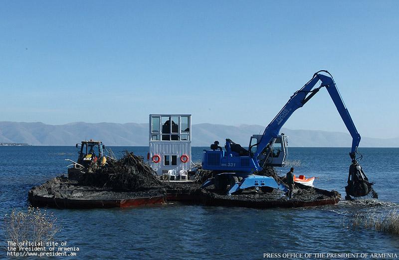 Այնուհետև Նախագահ Սերժ Սարգսյանին ներկայացվել են ջրածածկ և ճահճացած տարածքներում Սևանա լճի մաքրման աշխատանքներ կատարելու համար նախատեսված «Ուոթերմաստեր կլասիկ III» տիպի բազմաֆունկցիոնալ էքսկավատորի տեխնիկական հնարավորություններն ու մաքրման ենթակա տարածքների քարտեզները: Հանրապետության ղեկավարը հանձնարարություններ է տվել նաև լճի ափամերձ տարածքների մաքրման աշխատանքների հետ կապված` ընդգծելով ջրի մաքրման կարևորությունը: