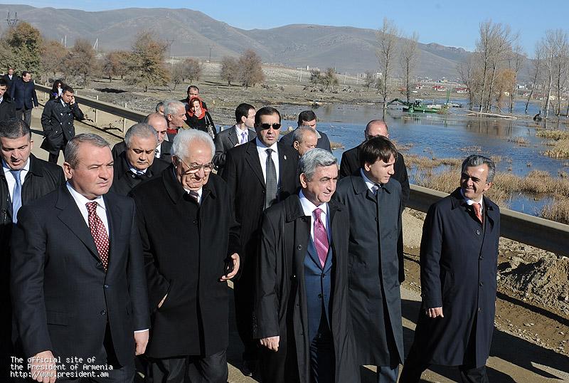 Գեղարքունիքի մարզում Նախագահը ծանոթացել է Սևան-Լճաշեն ճանապարհի Սևան-Մարտունի-Գետափ ջրածածկ հատվածների հիմնանորոգման աշխատանքներին: Հանրապետության ղեկավարին զեկուցվել է, որ 2010 թվականի նոյեմբերի 1-ի դրությամբ, նշված ճանապարհահատվածում պետական բյուջեի ֆինանսավորմամբ կատարվել են հիմնականում ափապաշտպան միջոցառումներ և հողային աշխատանքներ, 3400 մետր երկարության վրա տեղադրվել են մետաղյա արգելափակոցներ, կատարվել են նաև ճանապարհային պաստառի ամրացման աշխատանքներ: Նախագահի հանձնարարությամբ, ճանապարհի դիտարկվող հատվածի ասֆալտապատման համար միջոցներ կտրամադրվեն, և եղանակային բարենպաստ պայմանների պարագայում` արդեն 2011թ. գարնան սկզբին ճանապարհը կասֆալտապատվի: Հանձնարարվել է նաև մինչ այդ ապահովել ճանապարհի անցանելիությունը: