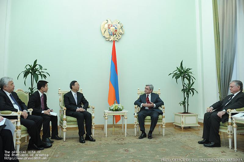 Նախագահ Սերժ Սարգսյանն այսօր ընդունել է Չինաստանի Ժողովրդական Հանրապետության արտաքին գործերի նախարար Յան Ձիեչին: