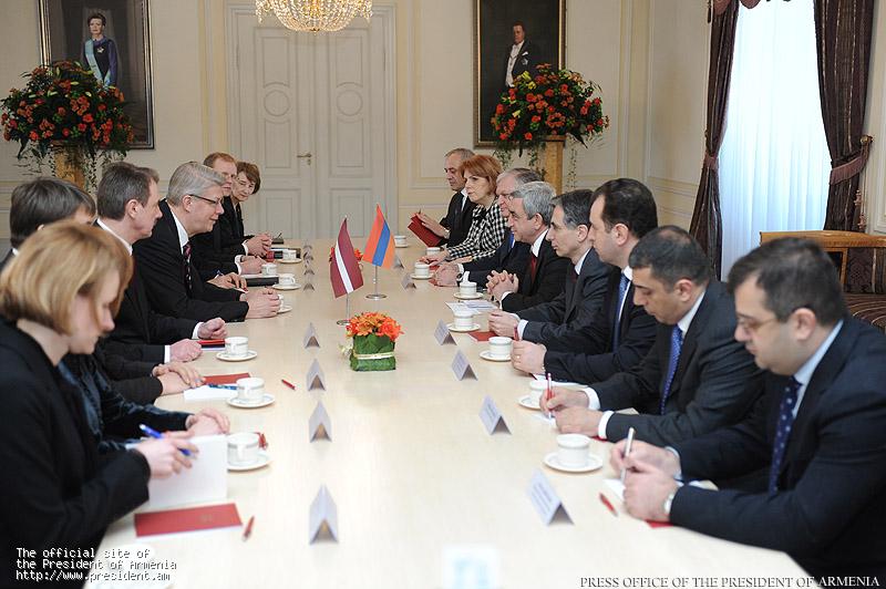 Անդրադառնալով 2009թ. Լատվիայի նախագահի Հայաստան կատարած պետական այցին` կողմերը նշել են, որ Նախագահ Զատլերսի այցի ընթացքում ձեռք բերված մի շարք պայմանավորվածություններ արդեն կյանքի են կոչվել: Իսկ Հայաստանի նախագահի այցի նպատակն է շարունակել 2009թ. դեկտեմբերին կայացած արդյունավետ երկխոսությունը` ի նպաստ երկու երկրների միջև բարեկամական հարաբերությունների հետագա զարգացման և խորացման: