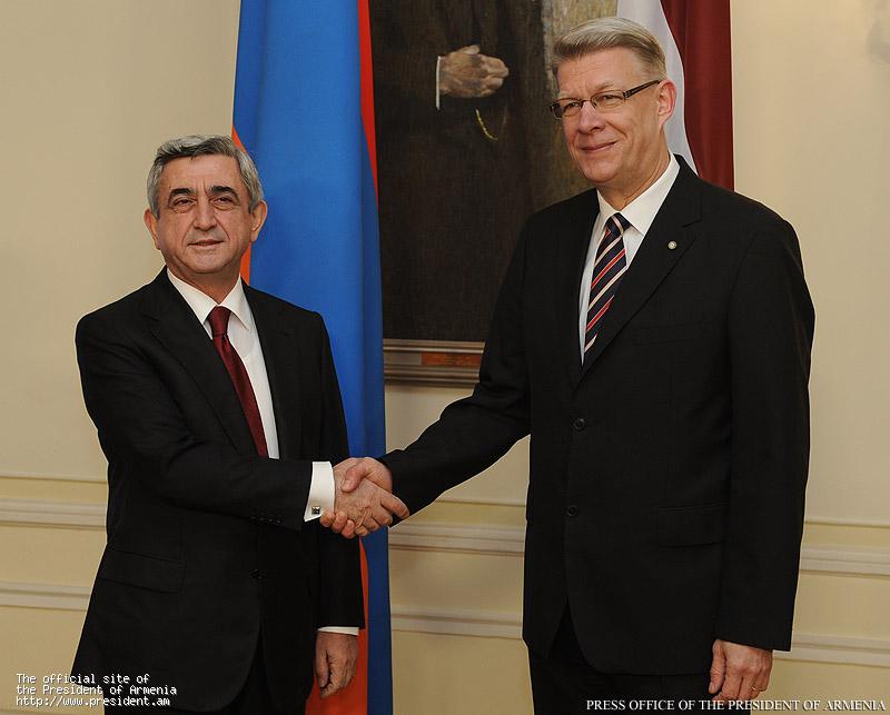Նախագահներ Սերժ Սարգսյանը և Վալդիս Զատլերսը գոհունակությամբ արձանագրել են, որ վերջին տարիներին փոխայցելությունների և բարձր մակարդակի հանդիպումների արդյունքում ակտիվացել է Հայաստանի և Լատվիայի միջև քաղաքական երկխոսությունը, զարգացել են կապերը մշակութային, կրթական և մի շարք այլ ոլորտներում: