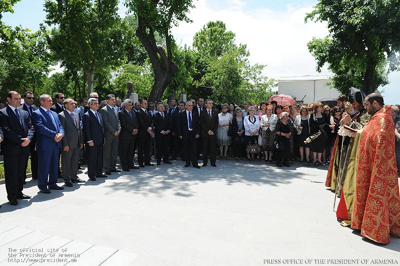 ՀՀ նախկին վարչապետ Անդրանիկ Մարգարյանի ծննդյան օրվա կապակցությամբ Նախագահ Սերժ Սարգսյանն այսօր երկրի բարձրագույն ղեկավարության ուղեկցությամբ այցելել է Կոմիտասի անվան պանթեոն, հարգանքի տուրք մատուցել ազգային-պետական գործչի հիշատակին: