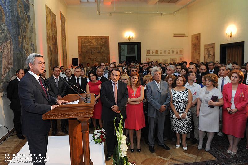 Նախագահ Սերժ Սարգսյանը ՀՀ անկախության 20-րդ տարեդարձի առթիվ այսօր Հայաստանի ազգային պատկերասրահում հրավիրել է տոնական ընդունելություն, որին մասնակցել են Հայաստանի քաղաքացիական հասարակության` քաղաքական կուսակցությունների, զանգվածային լրատվության միջոցների, Հանրային խորհրդի և հասարակական կազմակերպությունների ներկայացուցիչները: