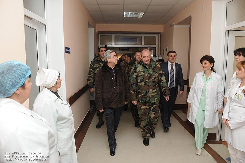 Աշխատանքային այցով Լեռնային Ղարաբաղի Հանրապետությունում գտնվող Նախագահ Սերժ Սարգսյանն այսօր ԼՂՀ նախագահ Բակո Սահակյանի հետ այցելել է Ասկերանի շրջանի Խնապատ գյուղի անասնաբուծական տոհմային կայան, ծանոթացել իրականացվող աշխատանքներին: ՀՀ և ԼՂՀ նախագահներն այնուհետ այցելել են Մարտակերտ շրջկենտրոնի հիմնանորոգված հիվանդանոց, ծանոթացել ստեղծված պայմաններին: