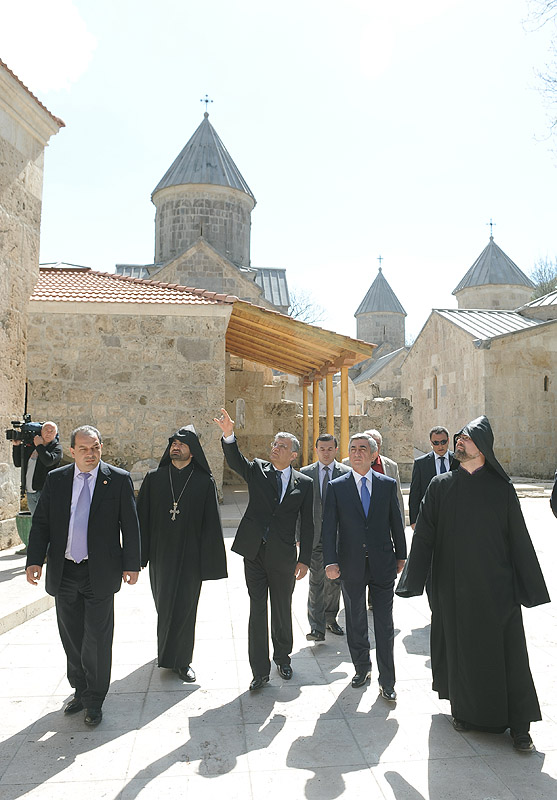 Նախագահ Սերժ Սարգսյանին ներկայացվել է նաև «Հայաստան» համահայկական հիմնադրամի ֆինանսավորմամբ հիմնանորոգված և ասֆալտապատված միջպետական ավտոճանապարհից Հաղարծին վանական համալիր տանող ավտոճանապարհը, նշվել է, որ կառուցվել է ջրատար, գազատար, անցկացվել է հոսանքագիծ: Սերժ Սարգսյանը Հաղարծին եկեղեցական համալիրում ծանոթացել է եկեղեցու վերակառուցման աշխատանքներին ևս: