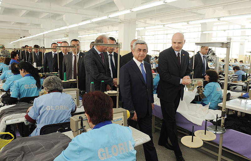 Տավուշի մարզից Նախագահ Սերժ Սարգսյանն այսօր մեկնել է Լոռու մարզ, որտեղ Հանրապետության ղեկավարի աշխատանքային այցը մեկնարկել է Վանաձորի «Գլորիա-Սարտիս» կարի ֆաբրիկա այցելությամբ: Նախագահը ծանոթացել է ֆաբրիկայում իրականացված աշխատանքներին ու զարգացման ծրագրերին: Դեռևս 2009թ. Հանրապետության ղեկավարի նախորդ այցի ժամանակ իտալական «SARTIS» և հայկական «Գլորիա» ընկերությունները ներկայացրել էին համատեղ ծրագիր՝ ուղղված համագործակցության շրջանակների ընդլայնմանը, արտադրության ծավալների և աշխատատեղերի քանակի ավելացմանը: Ծրագրի իրագործման նպատակով ընկերության պատասխանատուները խնդրել էին Նախագահի աջակցությունը որոշակի խնդիրների լուծման գործում: Հանրապետության նախագահի աջակցությամբ ընկերությունը կարողացել է լուծել այդ խնդիրները: Այսօր արդեն ներկայացնելով կատարված աշխատանքները՝ ընկերության պատասխանատուները նշել են, որ ծրագրի իրականացման արդյունքում արտադրությունը գործում է, ունի ավելի քան 450 աշխատող: «Գլորիա-Սարտիս»-ն արտադրում է եվրոպական շուկայում մրցունակ բարձր որակի հագուստ՝ միջազգային ճանաչում ունեցող ապրանքանիշների և մի շարք այլ ընկերությունների համար: Ընդգծվել է, որ 2013թ-ից հետո ծրագրեր կան արտադրություններ կազմակերպել նաև հանրապետության այլ բնակավայրերում՝ գերակայությունը տալով գյուղական համայնքներին: