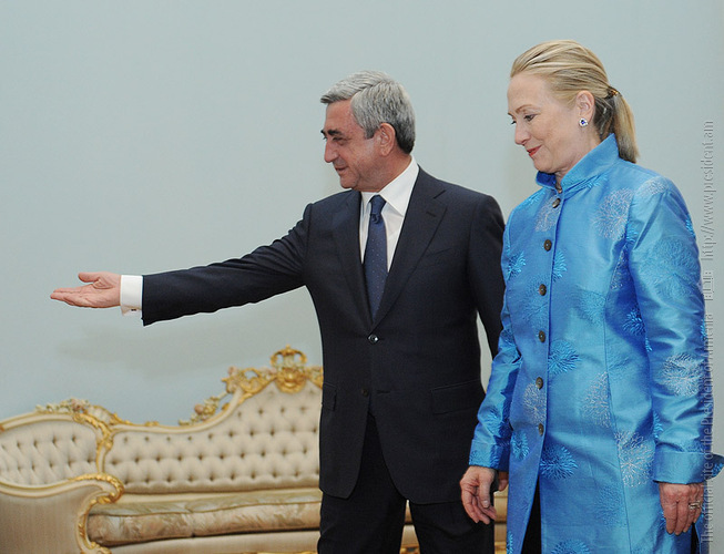 Նախագահ Սերժ Սարգսյանն այսօր ընդունել է աշխատանքային այցով Հայաստան ժամանած ԱՄՆ պետքարտուղար Հիլարի Քլինթոնին: