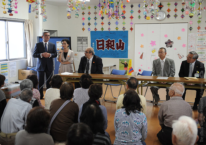 Նախագահն իր և պատվիրակության անունից ողջունել է աղետից տուժած Սենդայի բնակիչներին և նրանց փոխանցել հայ ժողովրդի համակրանքը: Սերժ Սարգսյանն ընդգծել է, որ մոտ մեկ տարի առաջ Ճապոնիայում տեղի ունեցած երկրաշարժի լուրից Հայաստանում ցնցված էին և ուշի-ուշով հետևում ու աղոթում էին Ճապոնիայի ժողովրդի համար: «Այդ ժամանակ Երևանի Ս. Գրիգոր Լուսավորիչ եկեղեցում հոգեհանգստյան պատարագ մատուցվեց: Ամենայն Հայոց Կաթողիկոսի աղոթքներին միացան հազարավոր հայեր և աղոթեցին բոլոր զոհերի հիշատակի համար:
