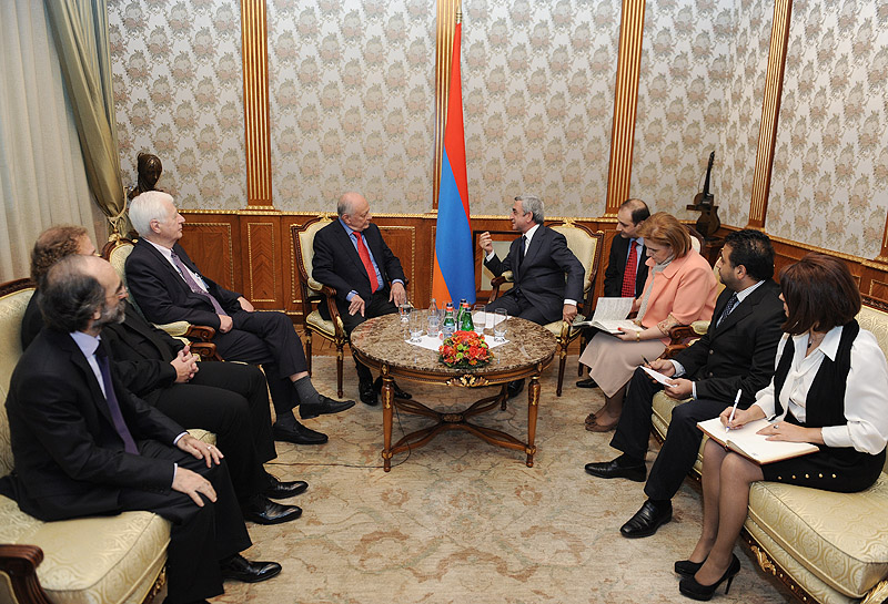 Նախագահ Սերժ Սարգսյանն այսօր ընդունել է «Երևանյան հեռանկարներ» միջազգային երաժշտական փառատոնի շրջանակներում Երևան ժամանած Ամստերդամի Թագավորական կոնցերտգեբաու նվագախմբի դիրիժոր Լորին Մաազելին, բրիտանական հեղինակավոր Հարիսոն Փարրոթ արվեստի մենեջմենթի ընկերության հիմնադիր և ղեկավար Ջասպեր Փարրոթին և Եվրամիության փառատոնային ասոցիացիայի նախագահ Դարկո Բրլեկին: