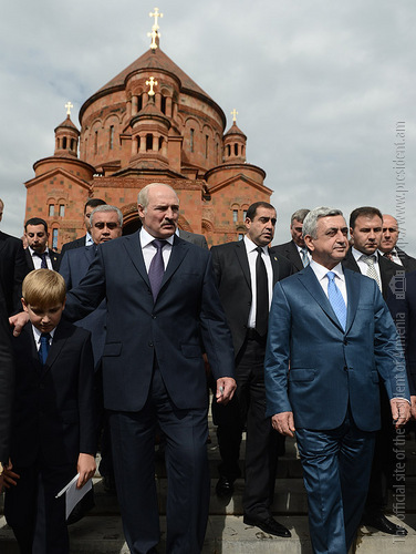 Այսօր Նախագահ Սերժ Սարգսյանը և նրա հրավերով պաշտոնական այցով Հայաստան ժամանած Բելառուսի Նախագահ Ալեքսանդր Լուկաշենկոն ներկա են գտնվել Կոտայքի թեմի Աբովյան քաղաքի Սբ. Հովհաննես Մկրտիչ նորակառույց եկեղեցու օծման արարողությանը: Մինչ այդ, Բելառուսի Նախագահը, այցի շրջանակներում, առավոտյան այցելել է Հայկական ատոմային էլեկտրակայան: