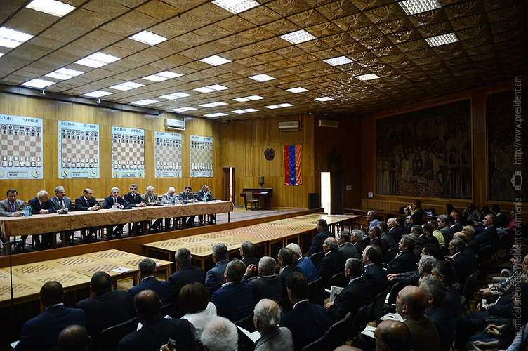 Մինչ օրակարգի հարցերին անցնելը, Նախագահ Սերժ Սարգսյանը նշել է, որ այս տարի համաժողովը համընկել է հայկական շախմատի և ընդհանրապես հայ ժողովրդի պատմության նշանավոր իրադարձություններից մեկի՝ 50 տարի առաջ, 1963 թվականի մայիսի 20-ին, մեր ժողովրդի հանճարեղ զավակ Տիգրան Պետրոսյանի՝ աշխարհի շախմատի 9-րդ չեմպիոն հռչակվելու հոբելյանի հետ: «Անկասկած կարելի է ասել, որ մեր շախմատիստների բոլոր հաջողությունները, փառահեղ նվաճումները Տիգրան Պետրոսյանի թողած այդ մեծ ավանդույթների ու ժառանգության շարունակությունն են կամ՝ արգասիքը»,-ընդգծել է Նախագահը: