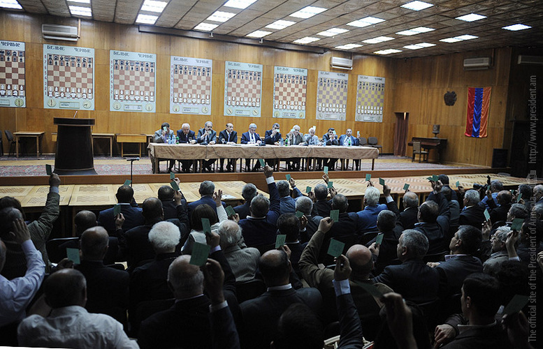 Այսօր Տիգրան Պետրոսյանի անվան շախմատի տանը տեղի է ունեցել Հայաստանի շախմատային ֆեդերացիայի հաշվետու-ընտրական համաժողովը, որը վարել է Հայաստանի շախմատային ֆեդերացիայի նախագահ, Հայաստանի Հանրապետության Նախագահ Սերժ Սարգսյանը: Համաժողովն ամփոփել է հաշվետու ժամանակահատվածում՝ 2011 թվականից ի վեր ֆեդերացիայի կատարած աշխատանքը, նախանշել հետագա անելիքները: