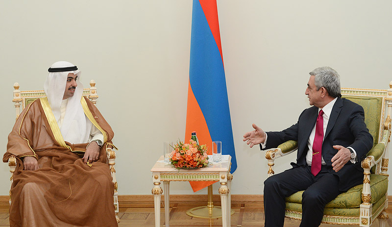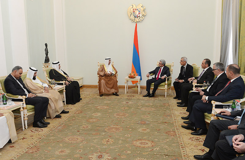 Սերժ Սարգսյանը ողջունել է հյուրերին և ընդգծել, որ Հայաստանում մշտապես ուրախ են հյուրընկալելու բարեկամ Քուվեյթից ժամանող պատվիրակություններին: Նախագահը նշել է, որ Հայաստանի և Քուվեյթի միջև խորհրդարանական կապերը և համագործակցությունը սկիզբ են առնում երկու բարեկամ երկրների հարաբերությունների ակունքից: Հանրապետության Նախագահի խոսքով, արաբական աշխարհի հետ Հայաստանի և հայ ժողովրդի հարաբերությունների խոսուն վկան ընդհանուր պատմությունն է, որի հիմքի վրա այսօր հաջողությամբ զարգանում են միջպետական հարաբերությունները: