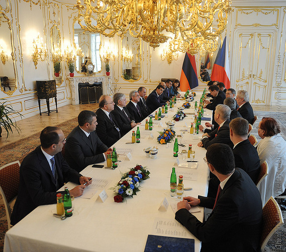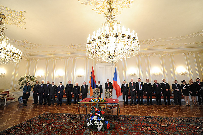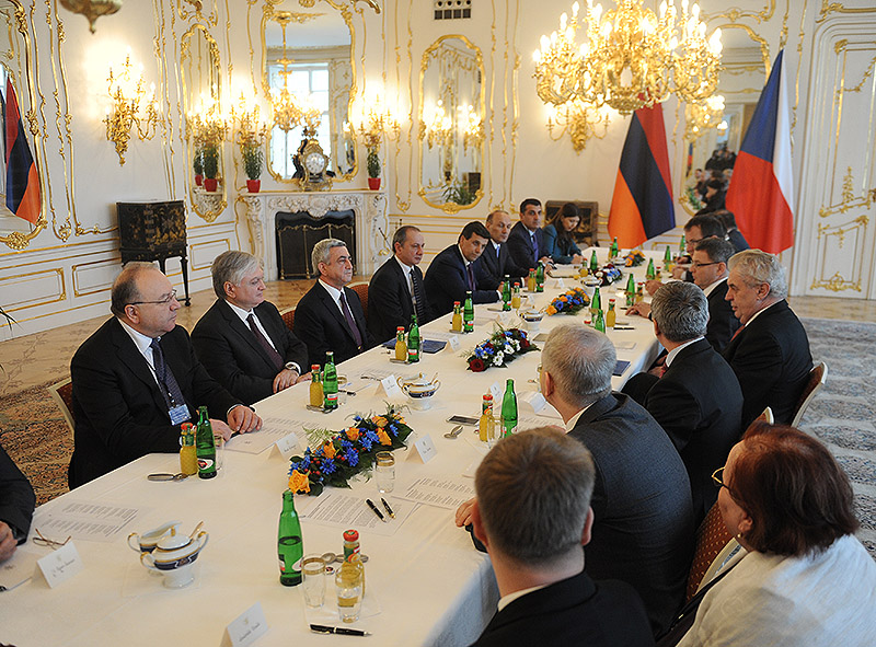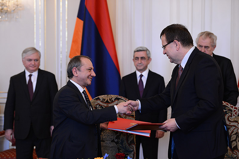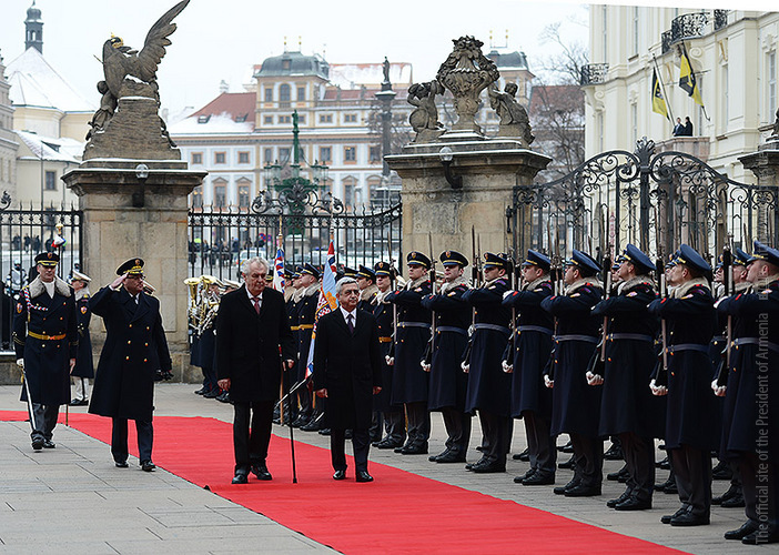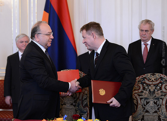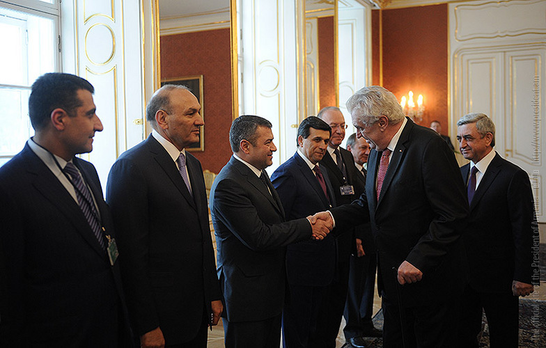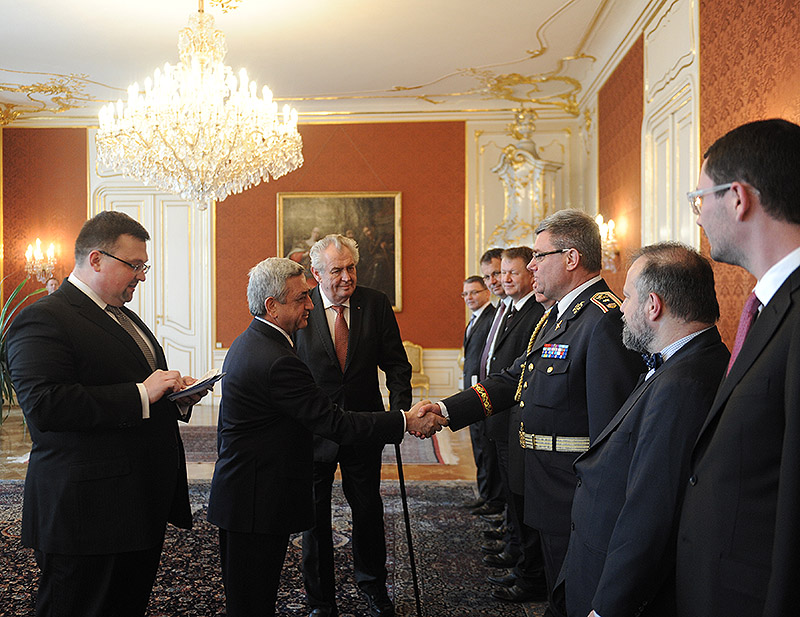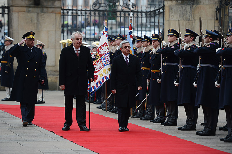 Պետական այցով Չեխիայի Հանրապետությունում գտնվող Նախագահ Սերժ Սարգսյանն այսօր հանդիպում է ունեցել Չեխիայի Նախագահ Միլոշ Զեմանի հետ: Երկու երկրների նախագահների բանակցությունների ավարտին տեղի է ունեցել մի շարք ոլորտներում համագործակցության զարգացմանն ու խորացմանն ուղղված երկկողմ փաստաթղթերի ստորագրման արարողություն: Մասնավորապես ստորագրվել՝ են Համաձայնագիր Հայաստանի Հանրապետության կառավարության և Չեխիայի Հանրապետության կառավարության միջև հանցավորության դեմ պայքարում համագործակցության վերաբերյալ, Համաձայնագիր Հայաստանի Հանրապետության կառավարության և Չեխիայի Հանրապետության կառավարության միջև տնտեսական և արդյունաբերական համագործակցության մասին, Համաձայնագիր Հայաստանի Հանրապետության առողջապահության նախարարության և Չեխիայի Հանրապետության առողջապահության նախարարության միջև առողջապահության և բժշկագիտության բնագավառում համագործակցության մասին, Փոխըմբռնման հուշագիր Հայաստանի Հանրապետության արտակարգ իրավիճակների նախարարության և Չեխիայի Հանրապետության ներքին գործերի նախարարության միջև աղետների կանխարգելման և դրանց հետևանքների վերացման, հրշեջ ծառայության և բնակչության պաշտպանության մասին, Համատեղ հռչակագիր Հայաստանի Հանրապետության բնապահպանության նախարարության և Չեխիայի Հանրապետության շրջակա միջավայրի նախարարության միջև բնապահպանության բնագավառում համագործակցության մասին, Փոխըմբռնման հուշագիր Հայաստանի Հանրապետության կառավարությանն առընթեր պետական եկամուտների կոմիտեի և Չեխիայի Հանրապետության մաքսային գլխավոր տնօրինության միջև համագործակցության մասին: