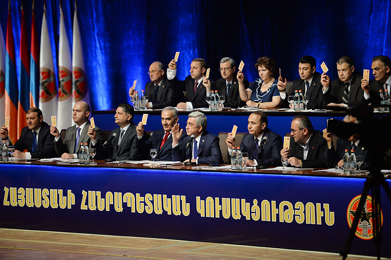 Ամփոփելով խոսքս՝ կոչ եմ անում բոլորիդ տրամադրվել լուրջ և տևական աշխատանքի: Այն գաղափարներն ու ծրագրերը, որոնք մենք պատրաստվում ենք կյանքի կոչել և այն քայլերը, որոնք մենք պատրաստվում ենք իրականացնել, կենսական նշանակություն ունեն մեր երկրի և մեր ժողովրդի համար: Դրանից կախված է ոչ միայն մեր կուսակցության, այլև մեր ողջ երկրի վարկը: Եթե մենք այսօր ամենամեծ կուսակցությունն ենք Հայաստանում, ապա դա հիմք չէ թուլանալու կամ ավելորդ ինքնավստահության: Ճիշտ հակառակը, մենք ամեն օր պարտավոր ենք վերահաստատել առաջատարի մեր դիրքերը՝ վերահաստատել գործով, կեցվածքով ու նպատակամղվածությամբ: