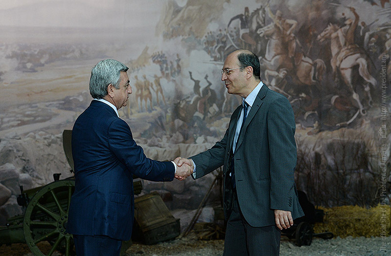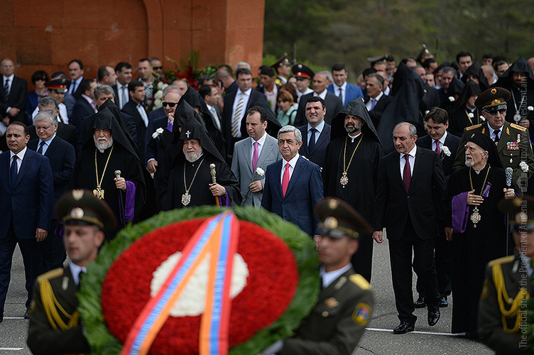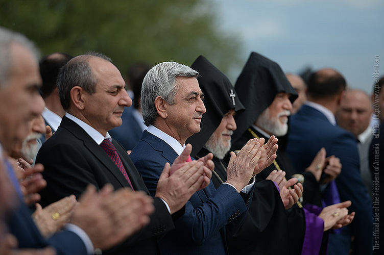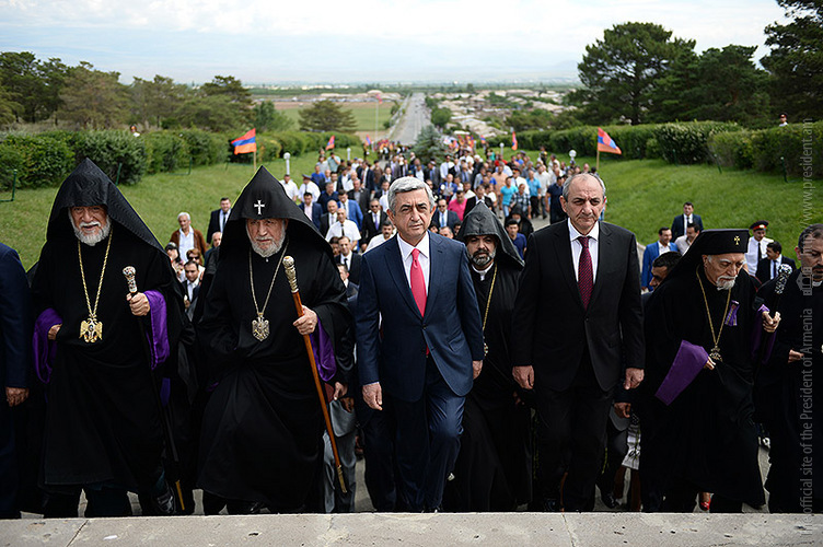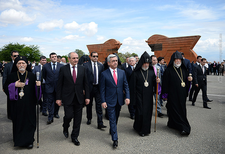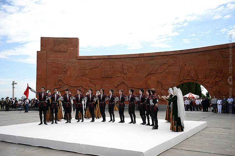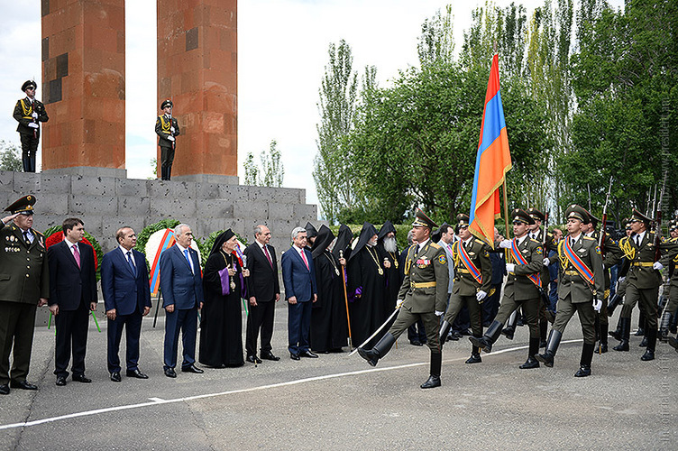 Նախագահ Սերժ Սարգսյանն այսօր Սարդարապատի հերոսամարտի հուշահամալիրում Ն.Ս.Օ.Տ.Տ. Գարեգին Բ Ամենայն Հայոց Կաթողիկոսի, Ն.Ս.Օ.Տ.Տ. Արամ Ա Մեծի Տանն Կիլիկիո Կաթողիկոսի, Տանն Կիլիկիո Կաթողիկե Հայոց Կաթողիկոս-Պատրիարք Ներսես Պետրոս ԺԹ-ի, Լեռնային Ղարաբաղի Հանրապետության Նախագահ Բակո Սահակյանի և ՀՀ բարձրագույն ղեկավարության հետ մասնակցել է Հանրապետության տոնին նվիրված տոնակատարությանը: Հանրապետության Նախագահը ծաղկեպսակ է դրել Սարդարապատի ճակատամարտի հերոսների հիշատակը հավերժացնող հուշակոթողին և հարգանքի տուրք մատուցել: Տոնակատարության շրջանակներում Նախագահն ընդունել է Պատվո նվագախմբի հանդիսավոր քայլերթը, հանդիսության մասնակիցների հետ դիտել տոնի առթիվ մշակութային կատարումը: