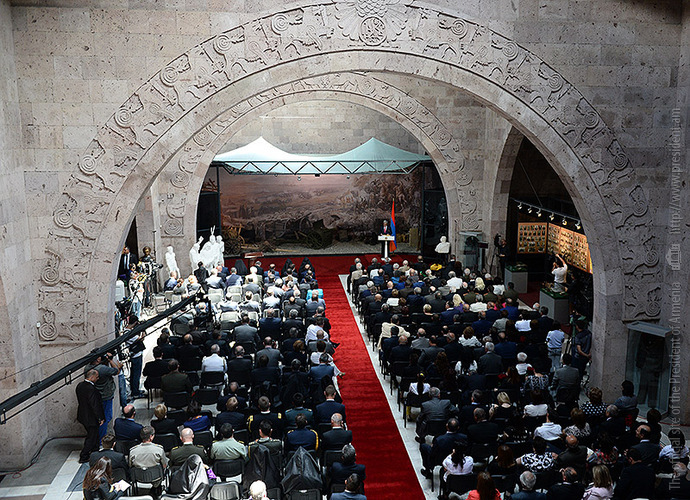 «Այն փաստը, որ այս արարողությունը տեղի է ունենում Սարդարապատում, առանձնահատուկ խորհուրդ ունի: Սրանով մենք ընդգծում ենք մեր ժողովրդի տարբեր սերունդների կապն ու ժառանգականությունը: Սրանով մենք շեշտում ենք, որ մեծ հաշվով բոլորի արած գործը նույն ուղեծրում է: Դա հայոց պետականությունն է, նրա պատմությունն ու ներկան: Զինվորականը, ուսուցիչը, գիտնականը, արվեստագետը, բժիշկը մենք բոլորս մեկ ուղեծրում ենք, որ կոչվում է Հայաստանի Հանրապետություն:
