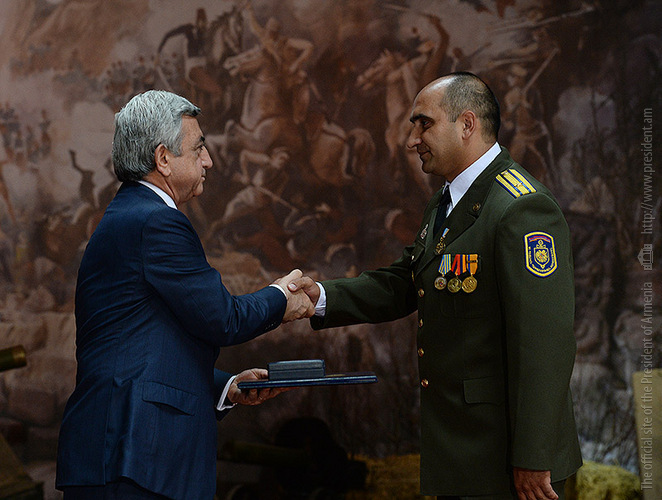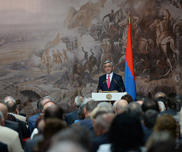 Սիրելի՛ պարգևատրվածներ, մաղթում եմ ձեզ, որ ձեր գործով և վարքով արժանի լինեք այն սխրանքին, որ մեր նախնիները գործել են այս սրբազան դարձած վայրում: Շնորհակալ եմ ձեր համբերատարության համար և ուզում եմ ասել, որ մենք, իհարկե, գիտակցաբար ավելի շատ մարդկանց հրավիրեցինք այստեղ պարգևատրվելու, որովհետև, իրոք, ես համարում եմ՝ սա առանձնահատուկ տեղ է, և առանձնահատուկ շնորհ է այստեղ պարգև ստանալը: Կրկին շնորհավորում եմ բոլորիդ պարգևատրվելու առթիվ»,-ասել է Հանրապետության Նախագահը: